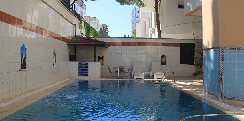 Açık Yüzme Havuzu: Palmiye ağaçları arasında, serinlemek ve güneşlenmek isteyen misafirlerimiz için keyifli bir alan.