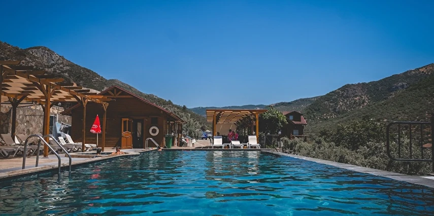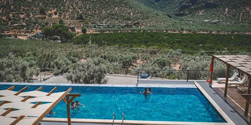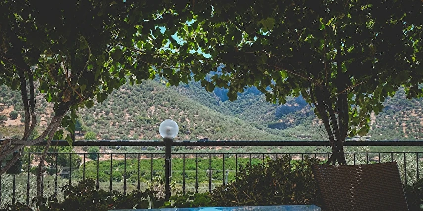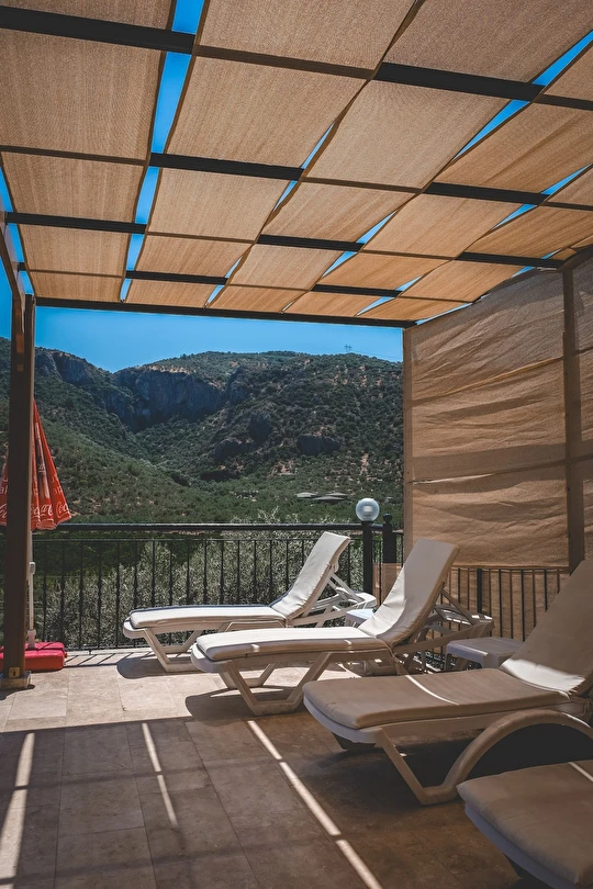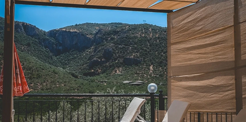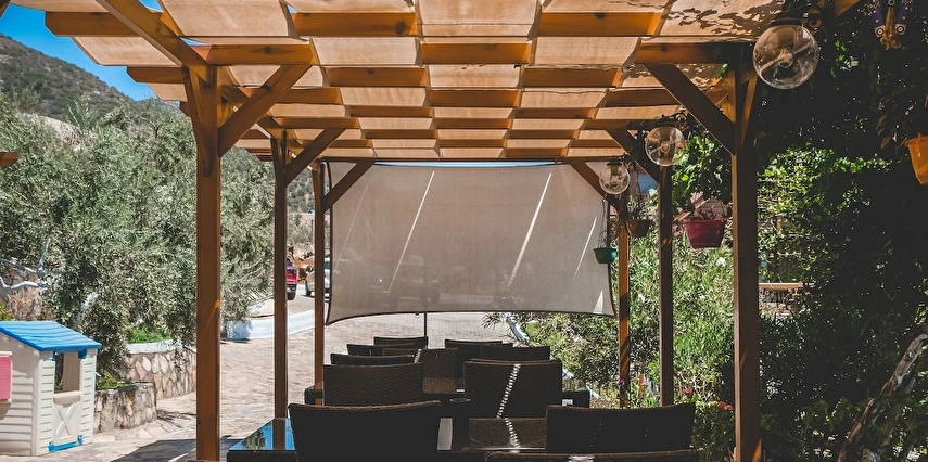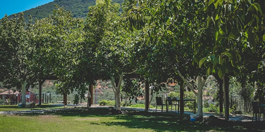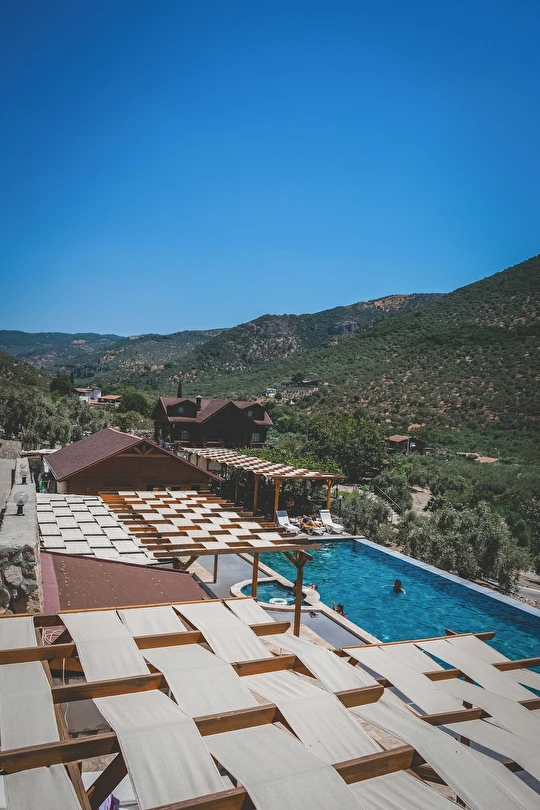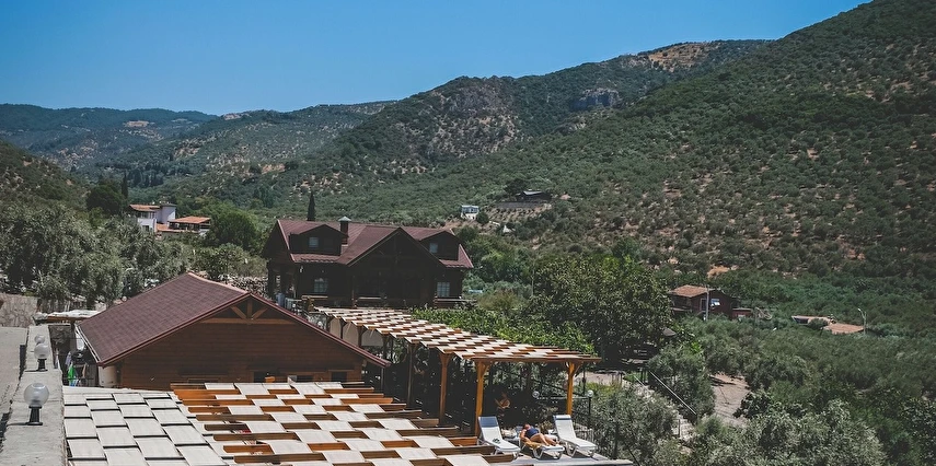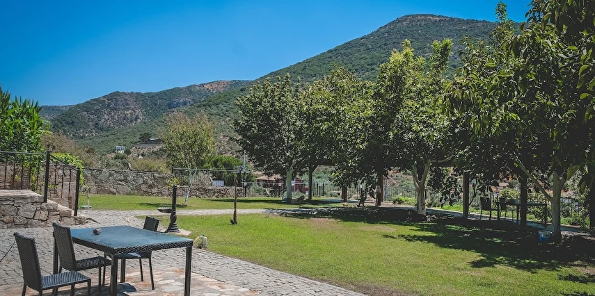 İşletmemizde bulunan bütün alanlar geniş bir bahçe tarafından çevrelenmektedir. Pergoleli teraslarımızda dağlar arasında 5. yüzyıldan kalan Selçuk Kalesi'ne karşı eşsiz bir manzara ile karşı karşıya kalacaksınız. Bu teraslarımızda aileniz ve sevdiklerinizle zaman geçirebilirsiniz