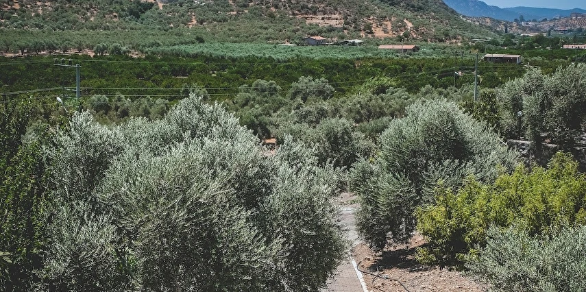 Arazide çok fazla sayıda olan zeytin ağaçlarının yanısıra birçok farklı meyve ağacı da bulunmaktadır. Misafirlerimize geldikleri mevsimin göz önünde bulundurularak dalından taze koparılmış bu meyvelerden ikram edilir.