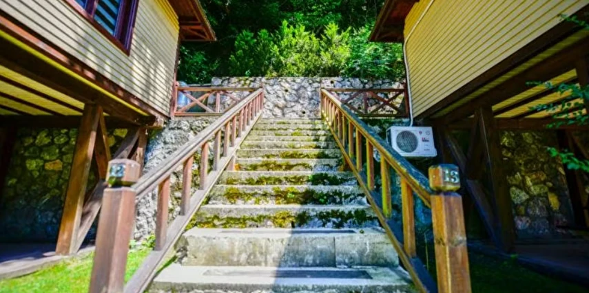 Odalar tesisin üst tarafında yer almakta olup, bazı oda kategorilerinde oda girişlerinde merdivenle olmaktadır.