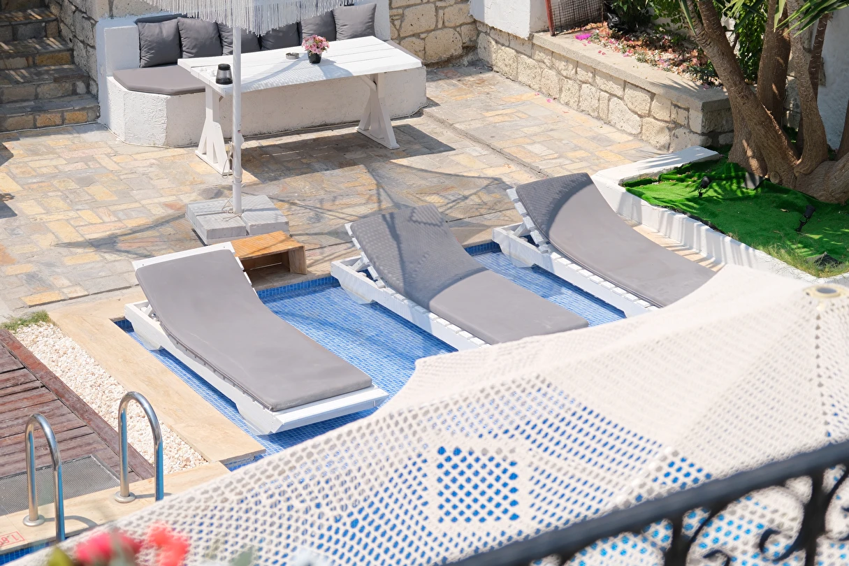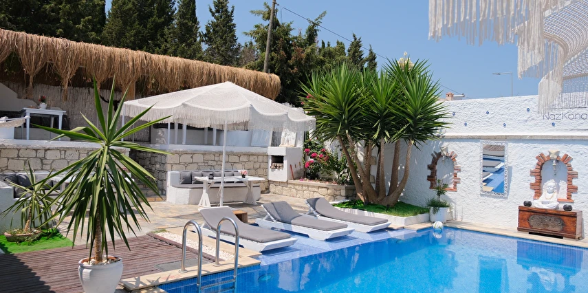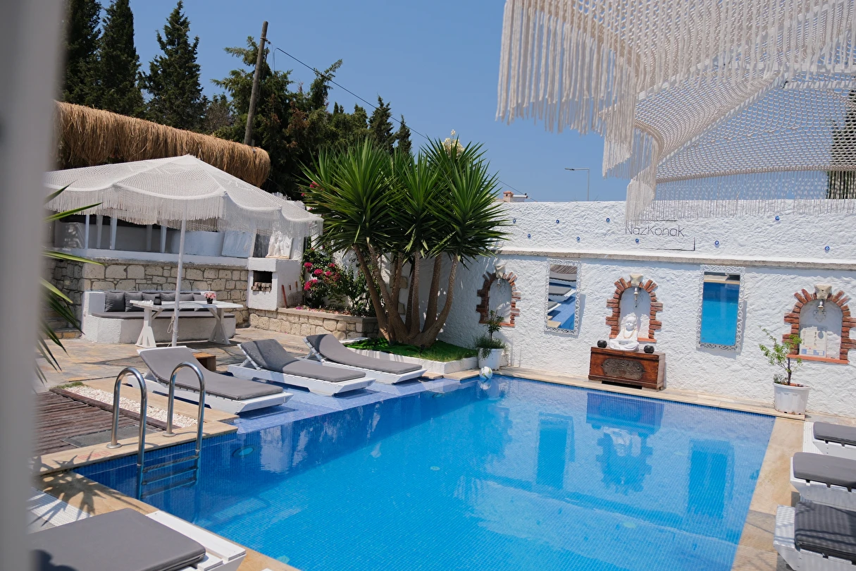 Yazın keyfini çıkarmanız için Naz Konak Alaçatı havuzu sizleri bekliyor. Her yaştan misafirin girebileceği havuzun etrafında güneşlenebilmeniz için şezlong ve şemsiyeler bulunuyor. Bahçesinde oturma mobilyaları bulunan tesiste sevdiklerinizle keyifle sohbet edebilirsiniz.