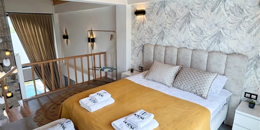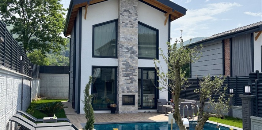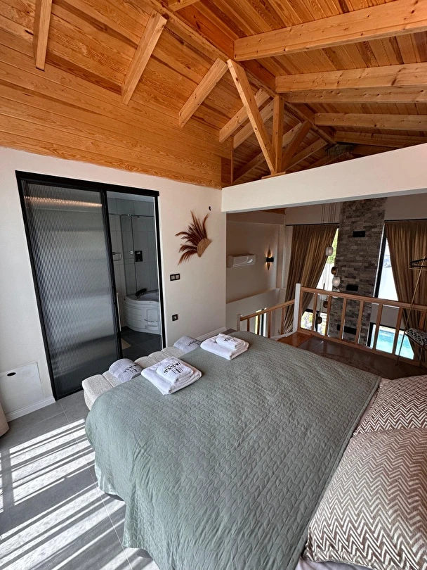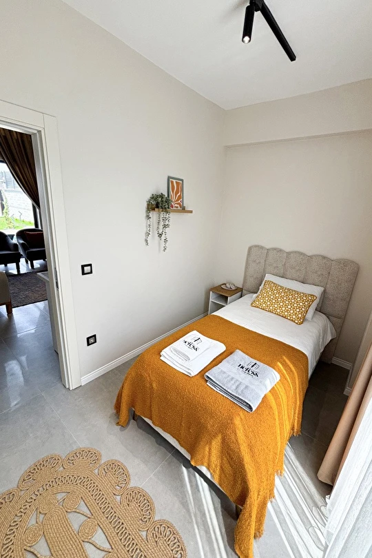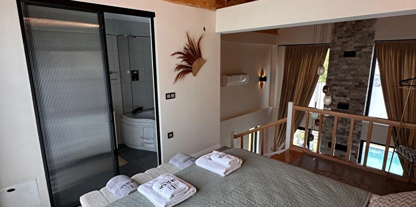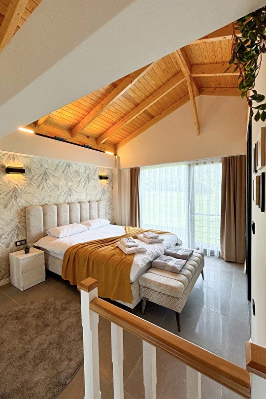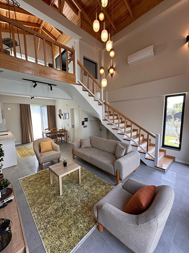 Tüm villalarımız 60 m² genişliğinde olup, rahat ve fonksiyonel tasarımıyla ev konforunu tatil keyfiyle buluşturur.
