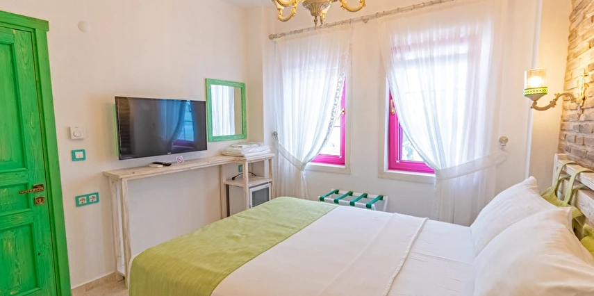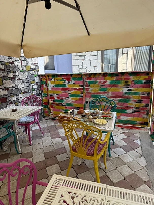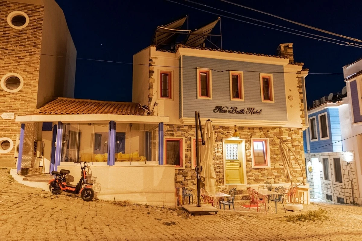 Daha Fazla Göster30 yıllık dostluğun, yıllarca süren hayallerin peşinden koşarak ruhu olan adaya renk katmaya geldik… Neo Hotel; İki eski dostun hayalleri üzerine kurulmuş, renklerin enerjisinden ilham alarak sıfırdan inşa edilmiş sıcak bir aile işletmesidir Neo Hotel olarak; bulunduğumuz yere renk katmak adına, içimizi de dışımız kadar rengarenk yaptık. Her biri ayrı bir enerjiyi temsil eden 7 ayrı renkle, 7 ayrı odalarımızı sizler için döşedik. Maviyle pembenin cümbüşünü dışarda bırakarak içeri girdiğiniz de; yeşil ve mor odamız sizi karşılamaktadır. Girişin alt katında kırmızı ve turuncu odamız, üst katında ise sarı, pembe ve mavi odamız sizleri beklemektedir.