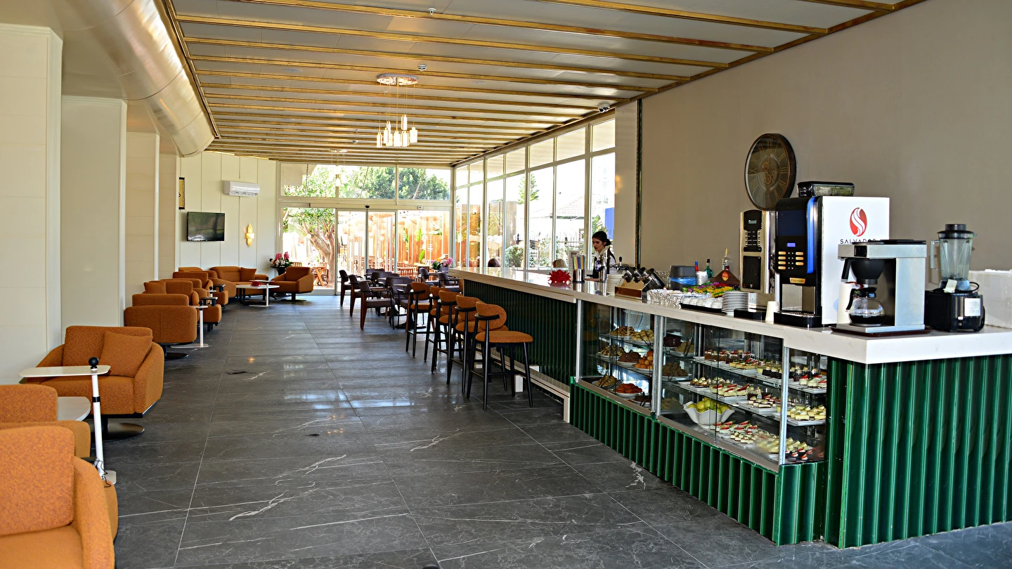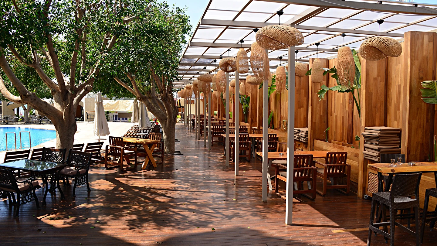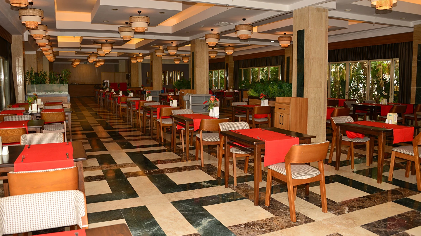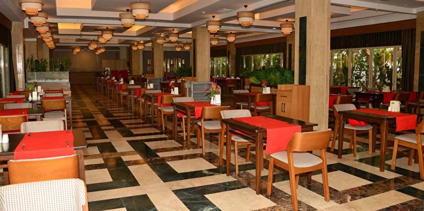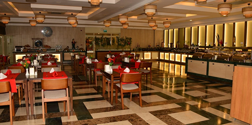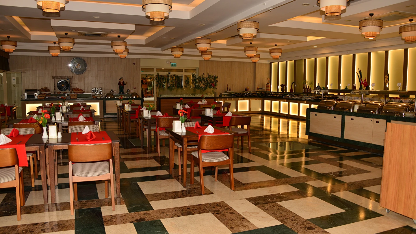 Sabah kahvaltısı, öğle yemeği ve akşam yemeği açık büfe olup, tesisin belirlemiş olduğu markalar dahilinde yerli alkollü ve alkolsüz içecekler 24 saat ücretsizdir. Türk Kahvesi sadece lobby barda mevcuttur. Bazı import içecekler ve taze sıkılmış meyve suları ücretlidir.