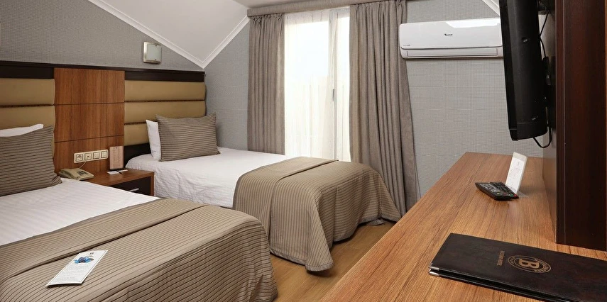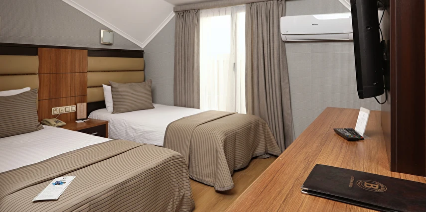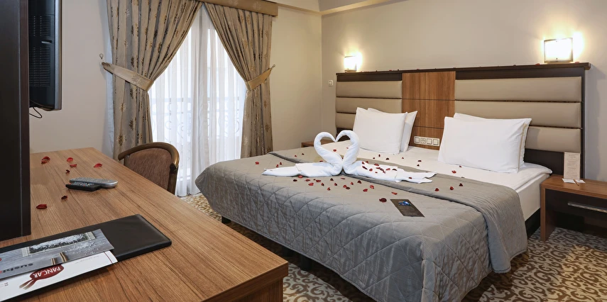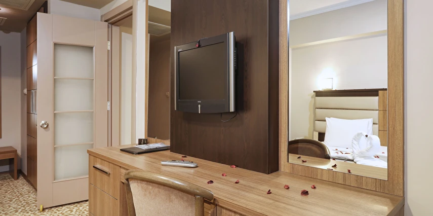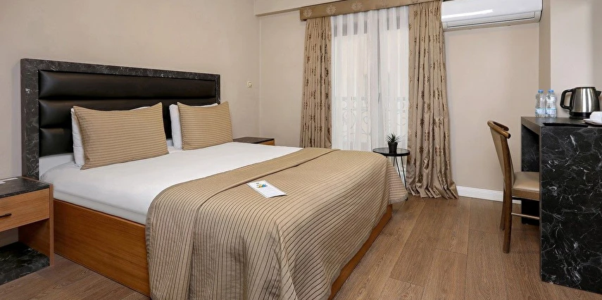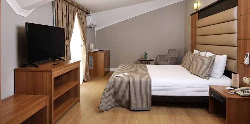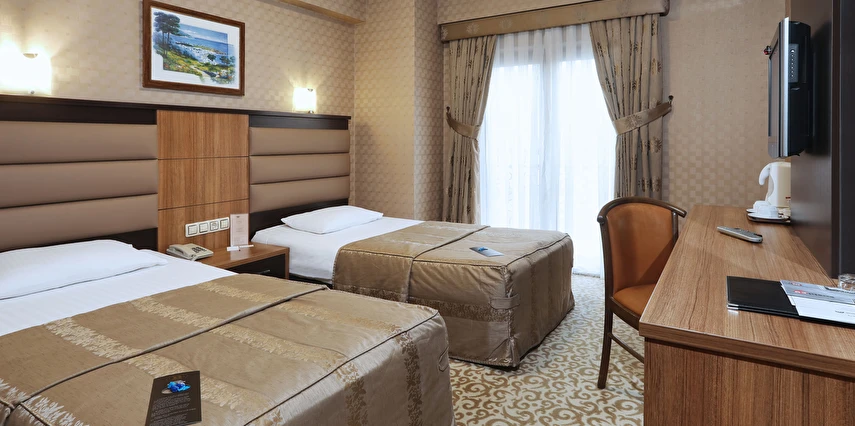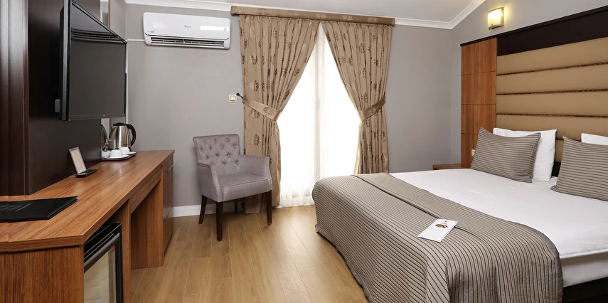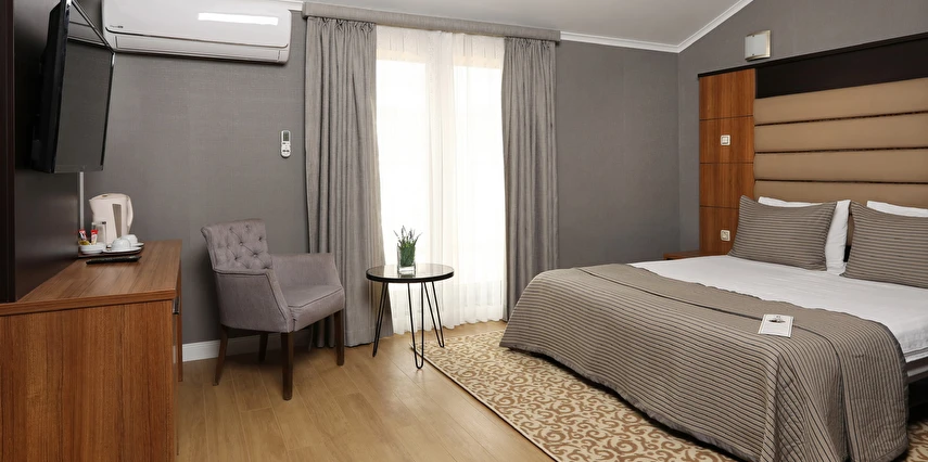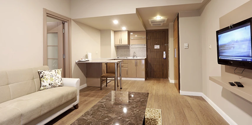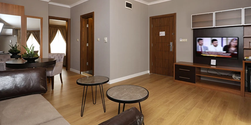 Geniş ailelere konforlu bir konaklama deneyimi kazandırmanın yanı sıra Suit odalarımızda, uzun konaklamalı misafirlerimizin de tercih edebileceği mutfaklı oturma odaları bulunmaktadır. Tüm odalarda uluslararası uydu yayınları mevcut büyük ekran LED TV, Split Klima, Fiber Hızlı internet, Merkezi Isıtma, Saç Kurutma Makinesi, Duşakabin, Mini Bar, Direkt Telefon ve Kablosuz İnternet Bağlantısı bulunmaktadır.