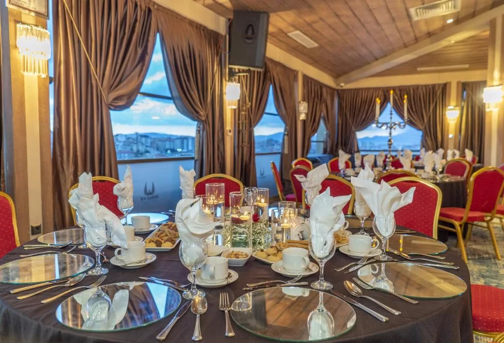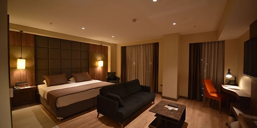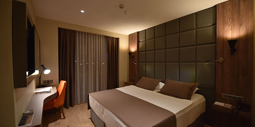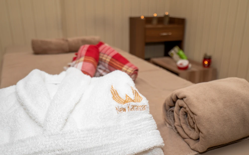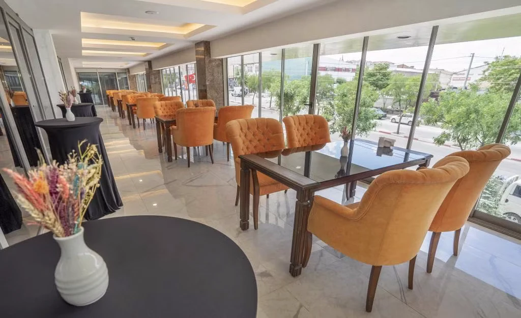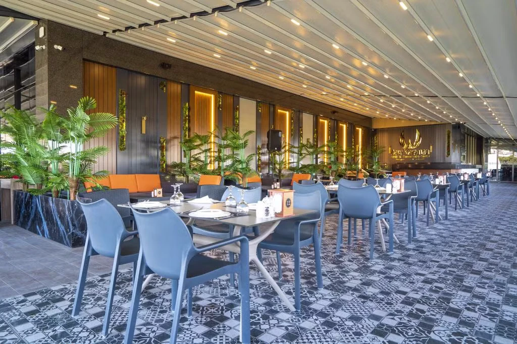 Daha Fazla GösterNew Karaman Hotel’in son teknoloji ile donatılmış odaları modern ve sıcak bir dekorasyona sahiptir. Misafirlerin konforu için pek çok detayın düşünüldüğü odalarda; minibar, klima, yüksek çözünürlüklü TV, elektronik kasa, dijital telefon, elektronik kapı kilit sistemi, yüksek hızlı Wi-Fİ erişimi, çay ve kahve set-up gibi olanaklar mevcuttur. Tesisin ana restoranında Türk ve dünya mutfaklarından seçkin lezzetler sunuluyor. Misafirler şehir manzarası eşliğinde a la carte lezzetlerin tadına bakabilirler. Roof Restoranı, günün her saatinde taze ve sağlıklı içeceklerin ve aperitiflerin bulunduğu pastane, lobi ve teras barı da misafirlerin keyifle kullanabileceği alanlar arasında bulunuyor. Dileyen misafirler tesisin SPA bölümünde yorgunluk atabilirler. Tesiste üç adet donanımlı ve modern toplantı salonu ve geniş fuaye alanları da bulunuyor. Şehir merkezinde yer alan konumu,son teknoloji ile donatılmış 103 modern odası ve güler yüzlü ekibi ile konaklamalarınızı kusursuz hale getirmeyi kendine ilke edinmiştir. Türk ve dünya mutfaklarından seçme eşsiz yemeklerin sunulacağı Ana Restoranı, eşsiz şehir manzarası eşliğinde en seçkin alakart yemekleri alabileceğiniz Roof Restoranı, günün her saatinde taze ve sağlıklı içeceklerin ve aperatiflerin bulunduğu pastane, lobby ve teras barı ile standartların ötesinde bir hizmet vermektedir. Kına, nişan,düğün,seminer,kongre ve özel toplantılarınızı yapabileceğiniz, en son teknoloji ile donatılmış 3 adet modern ve ferah toplantı salonları, geniş fuaye alanları ve 200 araçlık otoparkı ile organiasyonlarınız unutulmaz deneyimlere dönüşecektir. Otelin bünyesinde bulunan 600 m² Bay-Bayan sağlık kulübü bulunmaktadır. Karaman'ın merkezinde bulunan New Karaman Hotel modern mimarisi ve şık dekorasyonu ile hem iş hem de turistik amaçlı seyahatler için konforlu bir konaklama atmosferi sunuyor. Tesis misafirlerine restoran ve bardan SPA’ya kadar pek çok olanak sunuyor.