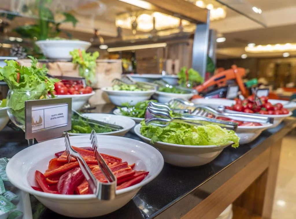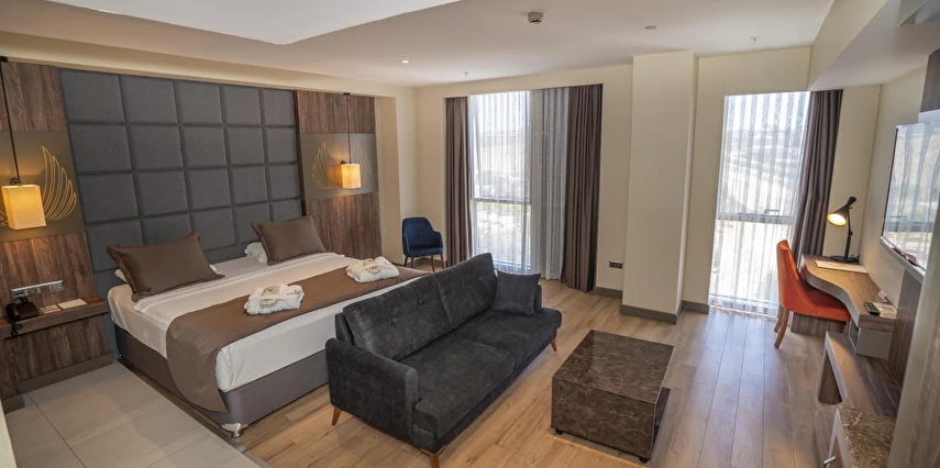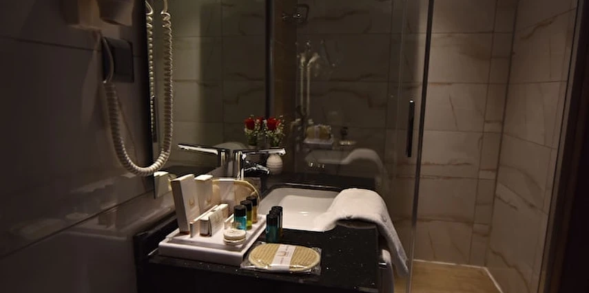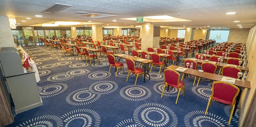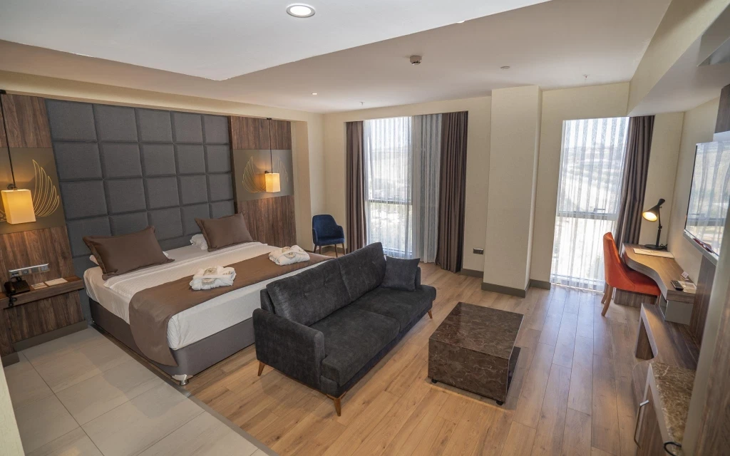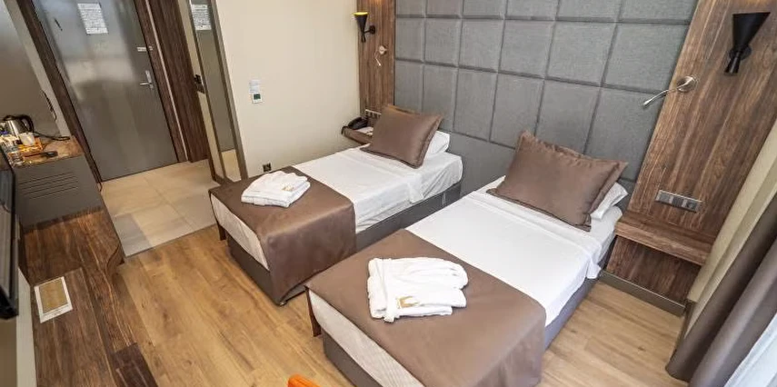 Daha Fazla GösterNew Karaman Hotel’in son teknoloji ile donatılmış odaları modern ve sıcak bir dekorasyona sahiptir. Misafirlerin konforu için pek çok detayın düşünüldüğü odalarda; minibar, klima, yüksek çözünürlüklü TV, elektronik kasa, dijital telefon, elektronik kapı kilit sistemi, yüksek hızlı Wi-Fİ erişimi, çay ve kahve set-up gibi olanaklar mevcuttur. Tesisin ana restoranında Türk ve dünya mutfaklarından seçkin lezzetler sunuluyor. Misafirler şehir manzarası eşliğinde a la carte lezzetlerin tadına bakabilirler. Roof Restoranı, günün her saatinde taze ve sağlıklı içeceklerin ve aperitiflerin bulunduğu pastane, lobi ve teras barı da misafirlerin keyifle kullanabileceği alanlar arasında bulunuyor. Dileyen misafirler tesisin SPA bölümünde yorgunluk atabilirler. Tesiste üç adet donanımlı ve modern toplantı salonu ve geniş fuaye alanları da bulunuyor. Şehir merkezinde yer alan konumu,son teknoloji ile donatılmış 103 modern odası ve güler yüzlü ekibi ile konaklamalarınızı kusursuz hale getirmeyi kendine ilke edinmiştir. Türk ve dünya mutfaklarından seçme eşsiz yemeklerin sunulacağı Ana Restoranı, eşsiz şehir manzarası eşliğinde en seçkin alakart yemekleri alabileceğiniz Roof Restoranı, günün her saatinde taze ve sağlıklı içeceklerin ve aperatiflerin bulunduğu pastane, lobby ve teras barı ile standartların ötesinde bir hizmet vermektedir. Kına, nişan,düğün,seminer,kongre ve özel toplantılarınızı yapabileceğiniz, en son teknoloji ile donatılmış 3 adet modern ve ferah toplantı salonları, geniş fuaye alanları ve 200 araçlık otoparkı ile organiasyonlarınız unutulmaz deneyimlere dönüşecektir. Otelin bünyesinde bulunan 600 m² Bay-Bayan sağlık kulübü bulunmaktadır. Karaman'ın merkezinde bulunan New Karaman Hotel modern mimarisi ve şık dekorasyonu ile hem iş hem de turistik amaçlı seyahatler için konforlu bir konaklama atmosferi sunuyor. Tesis misafirlerine restoran ve bardan SPA’ya kadar pek çok olanak sunuyor.