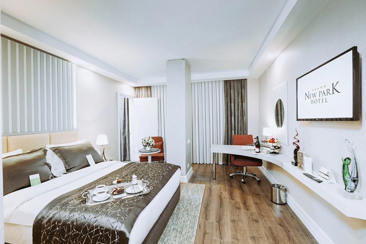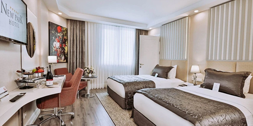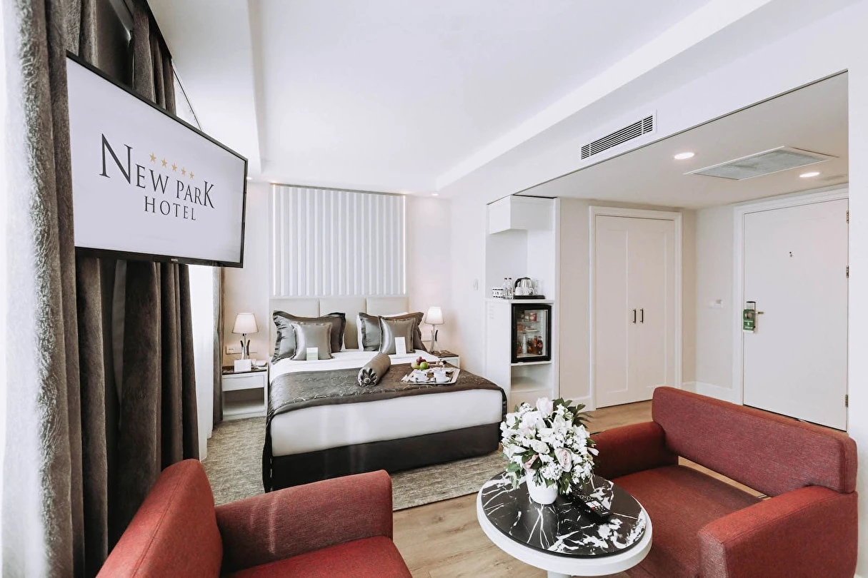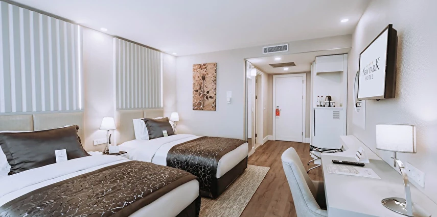 New Park Hotel’in modern çizgilerle tasarlanan ferah odaları, misafirlerin konforlu ve huzurlu bir konaklama deneyimi yaşaması için özenle hazırlanmıştır.