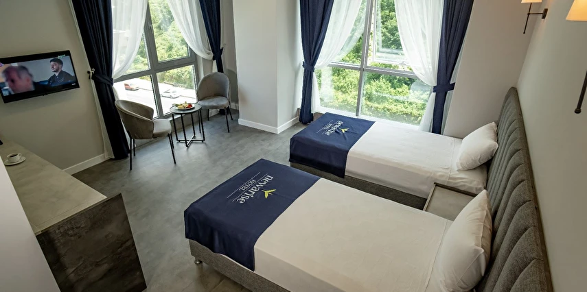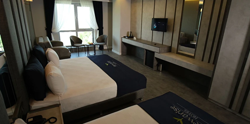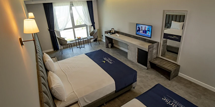 Daha Fazla GösterDoğanın tüm tonlarını bir arada sunan Rize’de konumlanan Newarise Hotel, Karadeniz’in eşsiz deniz ve yayla manzarası eşliğinde misafirlerine konforlu, huzurlu ve kaliteli bir konaklama deneyimi sunar. Modern mimarisi, ferah yaşam alanları ve profesyonel hizmet anlayışıyla Newarise Hotel, hem tatil hem de iş seyahatleri için ideal bir tercihtir.Newarise Hotel’in özenle tasarlanmış odaları; geniş kullanım alanları, modern dekorasyonu ve deniz ile doğa manzarası ile misafirlerine rahat bir konaklama sunar. Tüm odalarda klima, ücretsiz Wi-Fi, LCD TV, minibar ve modern banyo olanakları yer almaktadır. Güne Karadeniz’in temiz havası ve eşsiz manzarasıyla uyanmanın keyfini yaşayın.Güne zengin içerikli açık büfe kahvaltı ile başlayabilir, gün boyunca A’la Carte Restoran’ımızda özenle hazırlanan lezzetleri deneyimleyebilirsiniz. Teras Cafe, deniz ve doğa manzarası eşliğinde kahvenizi yudumlayabileceğiniz, keyifli vakit geçirebileceğiniz özel bir alan sunar.
