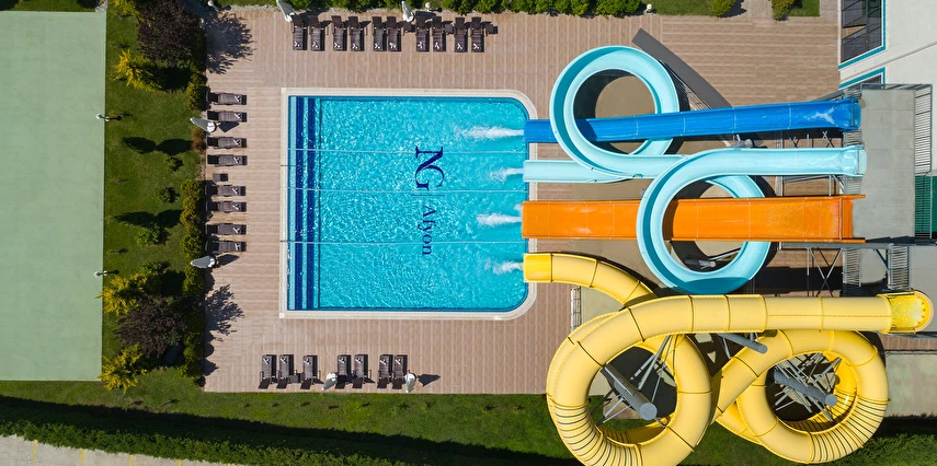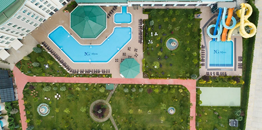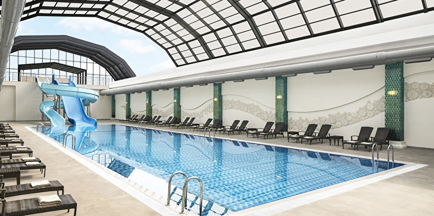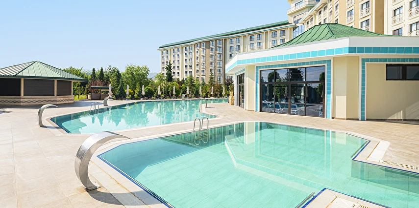 Karma Havuzlar;1 adet kapalı termal havuz, 2 adet kapalı havuz, 1 adet açık termal havuz, 1 adet açık havuz, 1 adet açık aquapark havuzu mevcuttur.