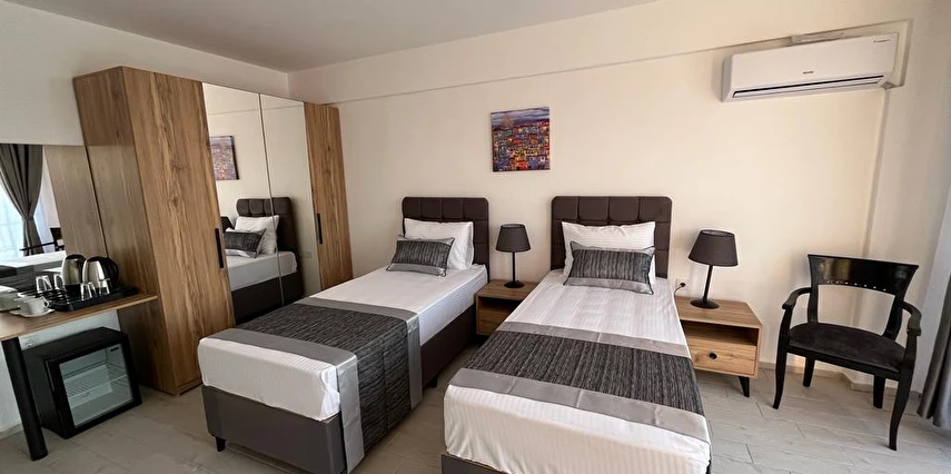 Otel odalarımızda TV, klima, minibar, saç kurutuma makinası ve güvenliğiniz için çelik kasa gibi olanaklar bulunmaktadır. Rahat bir konaklama deneyimi için her ayrıntı düşünülmüştür.