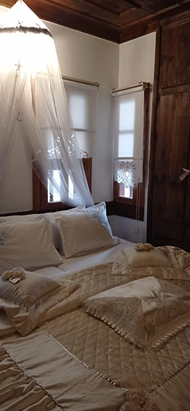 Daha Fazla Göster1800 yıllarında bölgede yaşayan Rum Ustalar tarafından yapılan sarnıçlı Konağımız, uzun yıllar yerli Rum aileler tarafından mesken olarak kullanılmıştır.2017 yılında orijinal taş ve ahşap yapısı korunup, mimarisine sadık kalınarak,butik otel olarak hizmet verecek şekilde restore edilmiştir. Bahçede kendisine ait orijinal su sarnıcı bulunmaktadır.6 odasının her biri kendine özgü farklı mimari özelliklerde olup, her detay düşünülerek dekore edilmiştir.