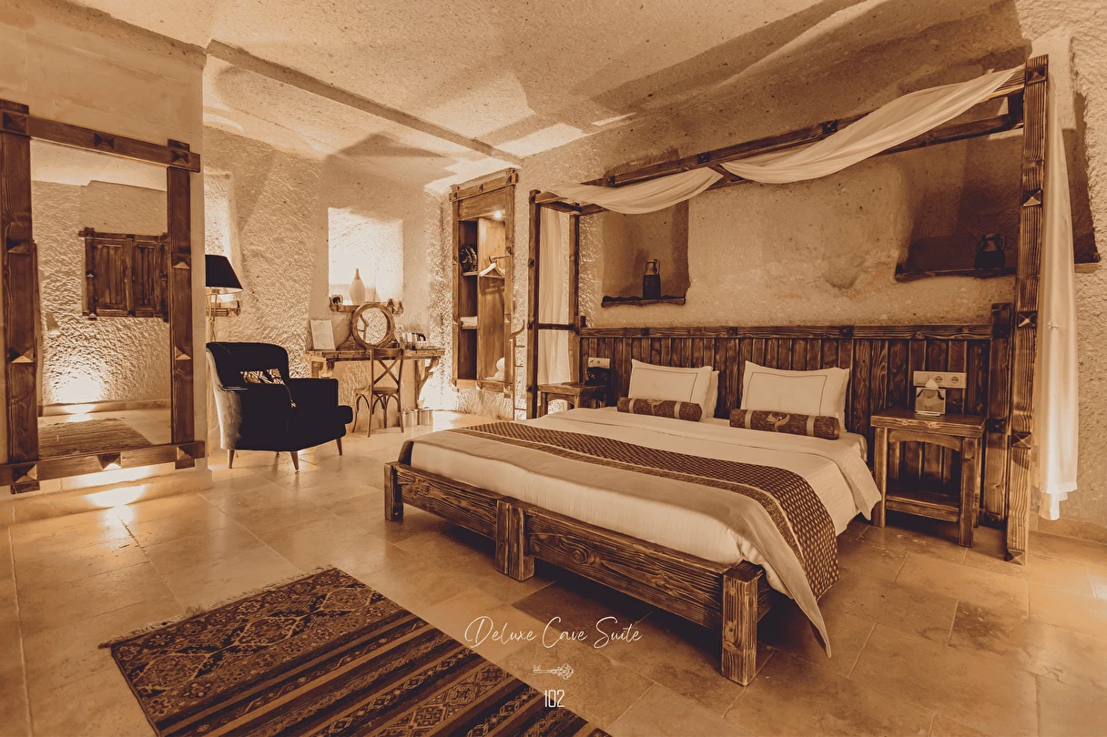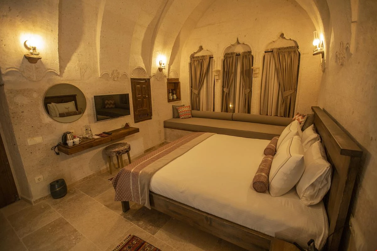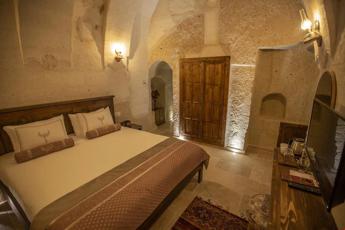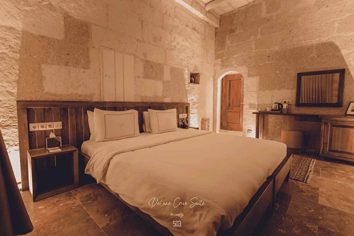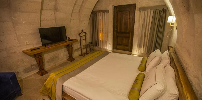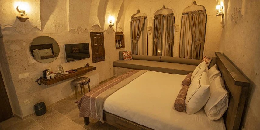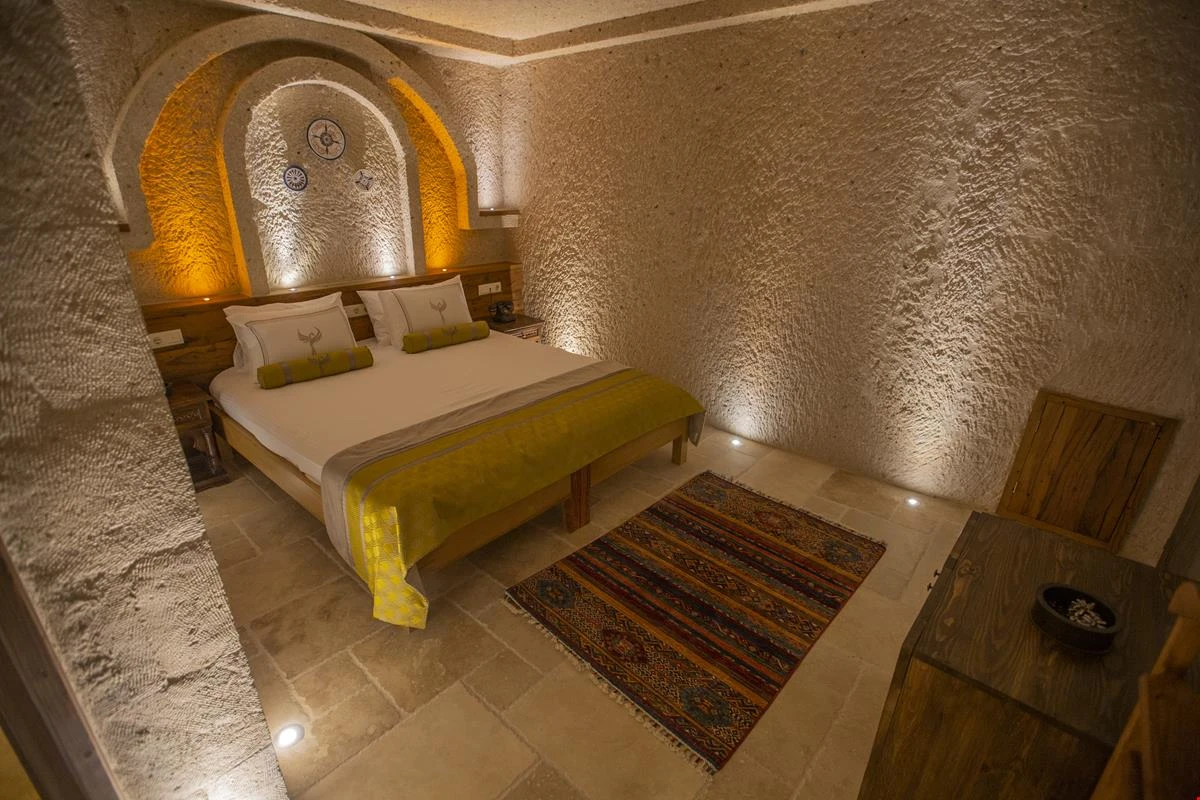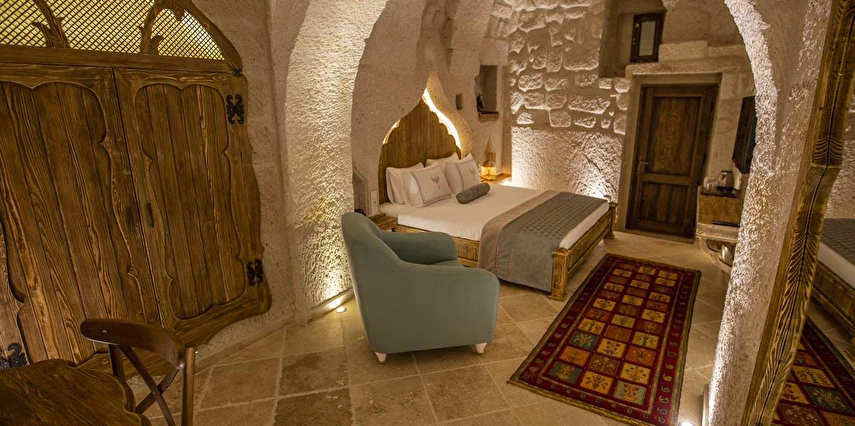 Nino Cave Suites Cappadocia” ismini MS 400’lü yıllarda aynı bölgede bir mağara’da doğmuş ve zamanla dünyaca ünlenmiş “Azize Nino” dan almaktadır. İbrahimpaşa köyünün Ortahisara doğru uzanan Balkan Vadisi’ne bakan hakim tepe noktada konumlanmış otelimiz, 32 sofistike mağara suiti, tüm odalarında lüks banyo ürünleri ile değerli misafirlerine “butik yaşam-tarzı” bir konaklama hizmeti sunmaktadır. Kapadokyanın tam kalbinde yer alan İbrahimpaşa köyü peribacalarıyla çevrilidir. Kapadokyanın turistik bölgeleri olan Ortahisar, Göreme ve Uçhisar’a 5 dakika; Ürgüp ve Avanos’a 15 dakika mesafededir. Nevşehir havalimanına 45 dakika, Kayseri havalimanına 1 saat mesafededir.
