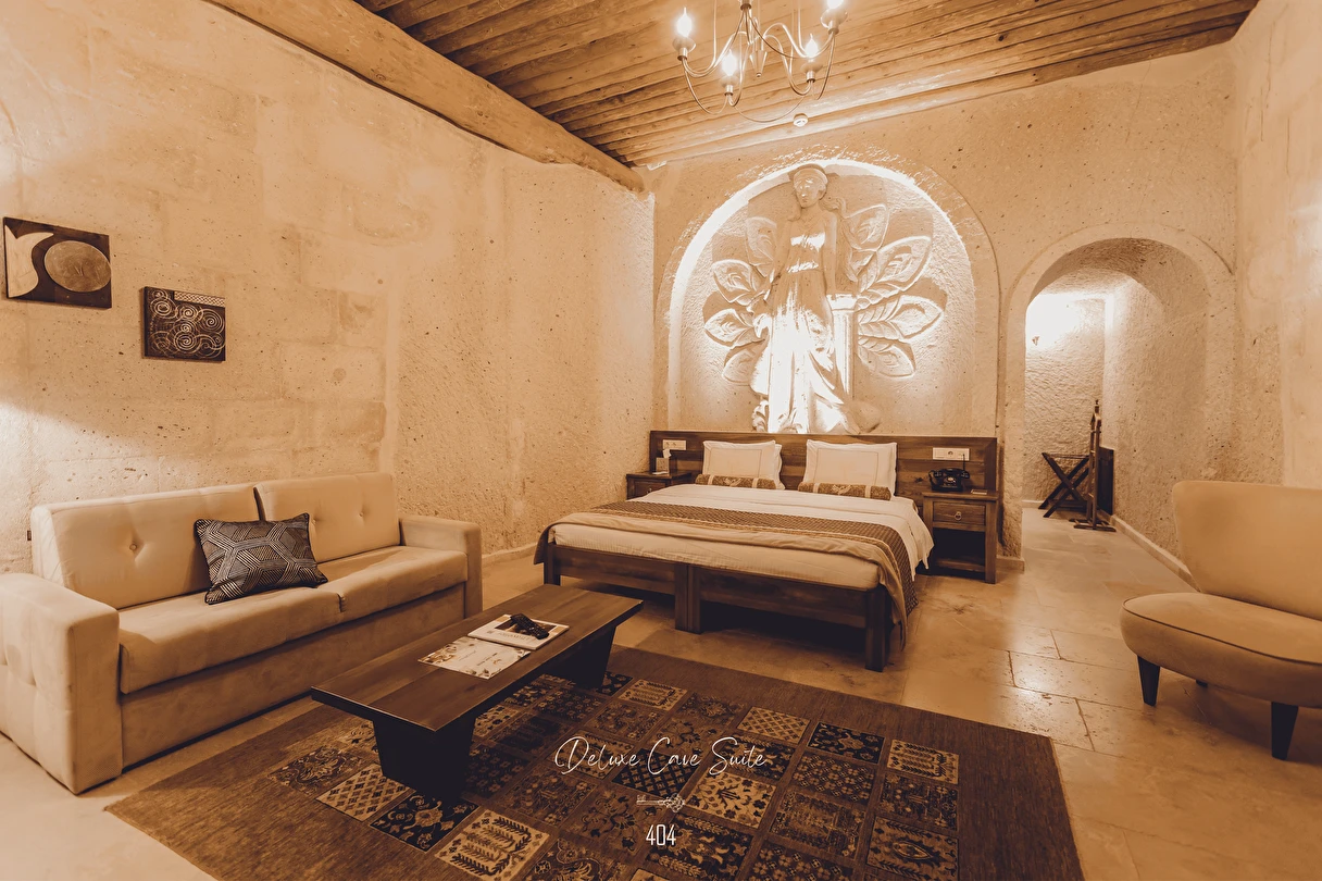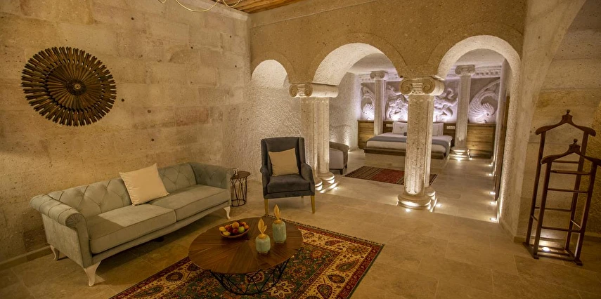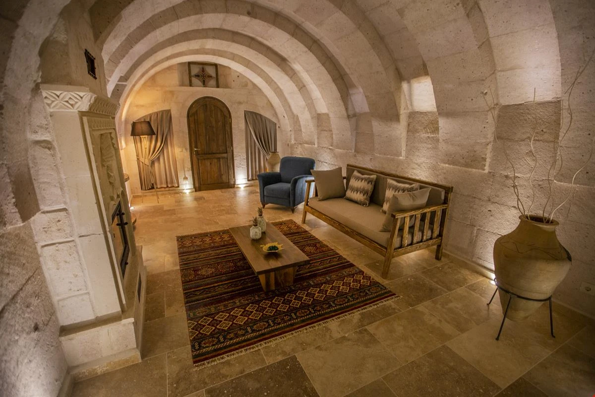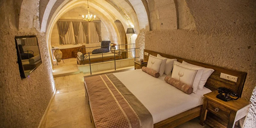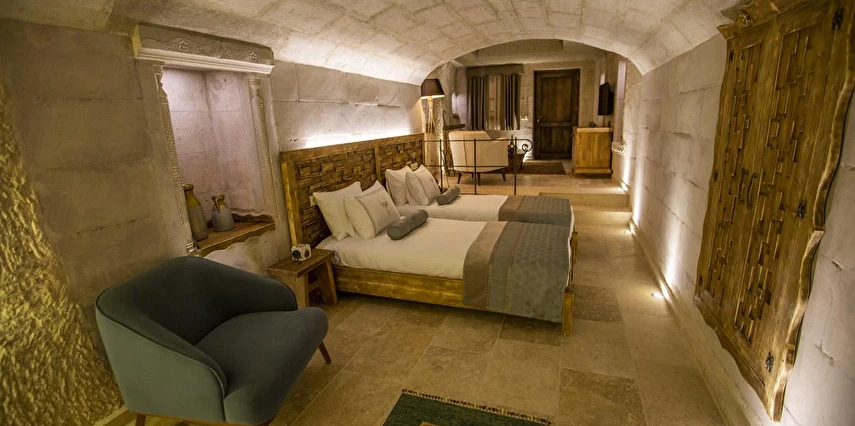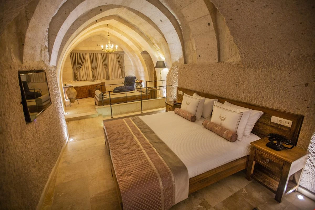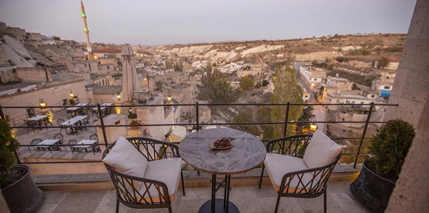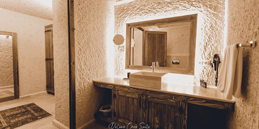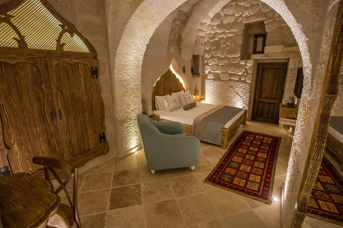 Nino Cave Suites Cappadocia” ismini MS 400’lü yıllarda aynı bölgede bir mağara’da doğmuş ve zamanla dünyaca ünlenmiş “Azize Nino” dan almaktadır. İbrahimpaşa köyünün Ortahisara doğru uzanan Balkan Vadisi’ne bakan hakim tepe noktada konumlanmış otelimiz, 32 sofistike mağara suiti, tüm odalarında lüks banyo ürünleri ile değerli misafirlerine “butik yaşam-tarzı” bir konaklama hizmeti sunmaktadır. Kapadokyanın tam kalbinde yer alan İbrahimpaşa köyü peribacalarıyla çevrilidir. Kapadokyanın turistik bölgeleri olan Ortahisar, Göreme ve Uçhisar’a 5 dakika; Ürgüp ve Avanos’a 15 dakika mesafededir. Nevşehir havalimanına 45 dakika, Kayseri havalimanına 1 saat mesafededir.