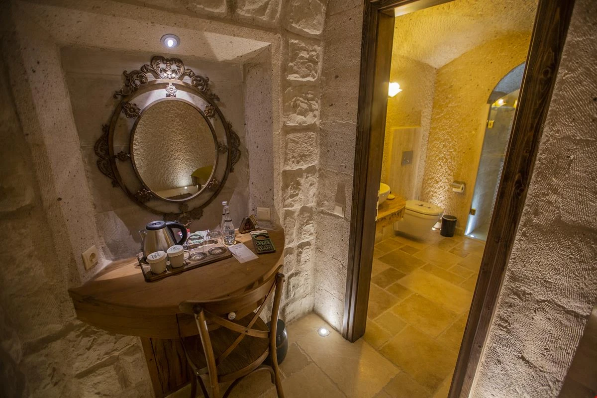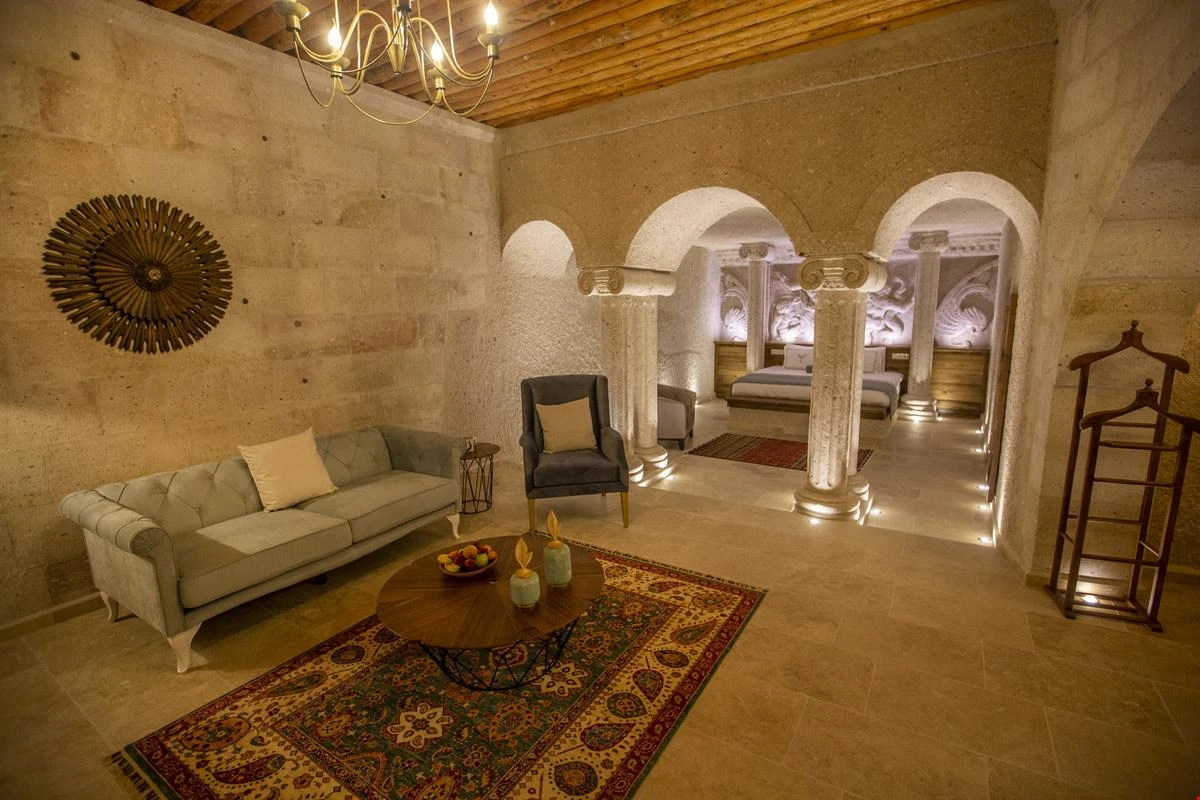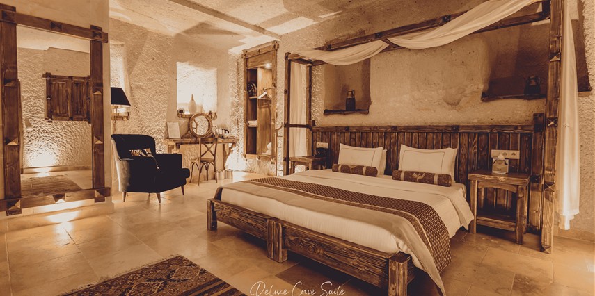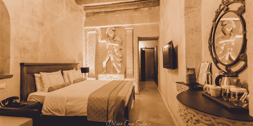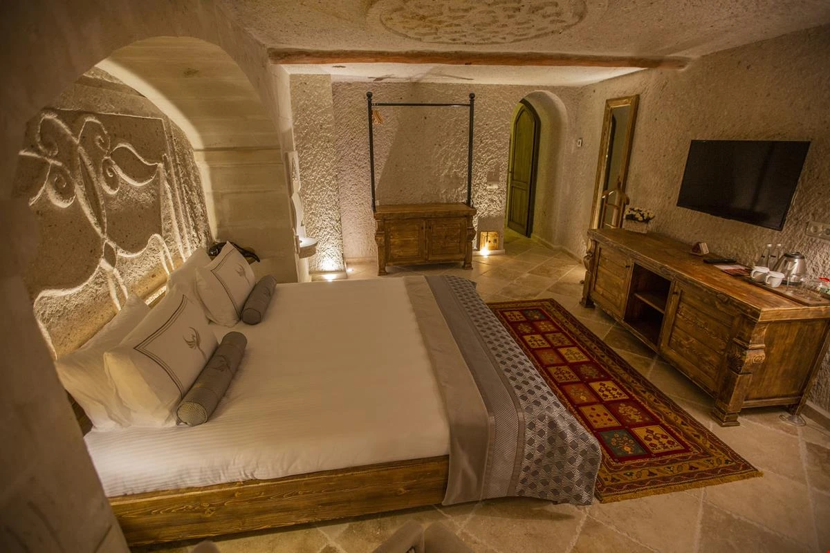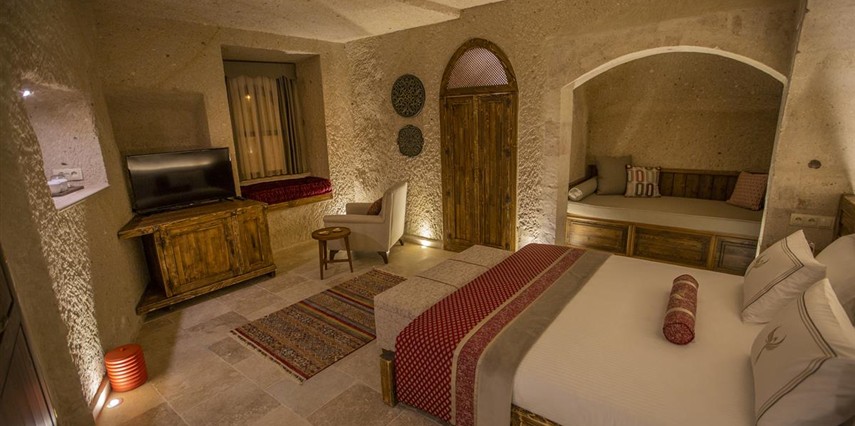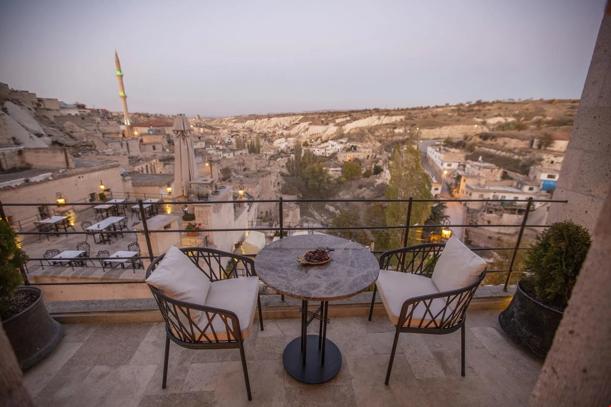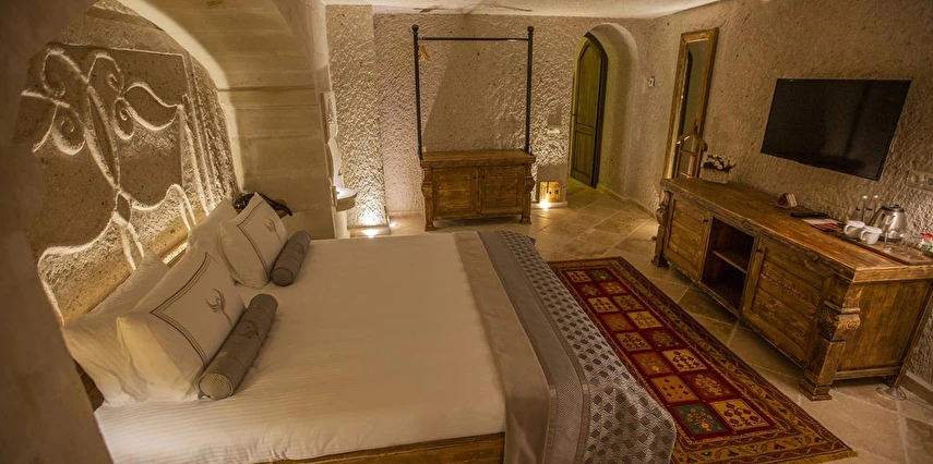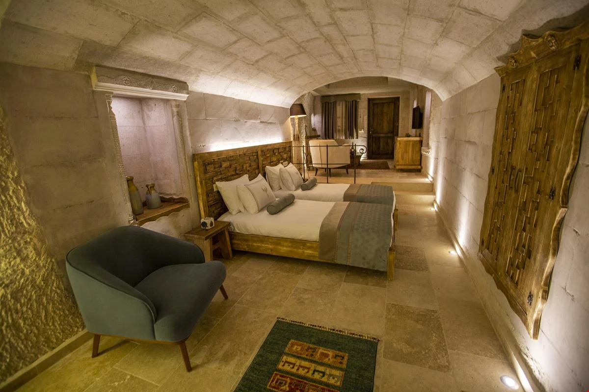 Nino Cave Suites Cappadocia” ismini MS 400’lü yıllarda aynı bölgede bir mağara’da doğmuş ve zamanla dünyaca ünlenmiş “Azize Nino” dan almaktadır. İbrahimpaşa köyünün Ortahisara doğru uzanan Balkan Vadisi’ne bakan hakim tepe noktada konumlanmış otelimiz, 32 sofistike mağara suiti, tüm odalarında lüks banyo ürünleri ile değerli misafirlerine “butik yaşam-tarzı” bir konaklama hizmeti sunmaktadır. Kapadokyanın tam kalbinde yer alan İbrahimpaşa köyü peribacalarıyla çevrilidir. Kapadokyanın turistik bölgeleri olan Ortahisar, Göreme ve Uçhisar’a 5 dakika; Ürgüp ve Avanos’a 15 dakika mesafededir. Nevşehir havalimanına 45 dakika, Kayseri havalimanına 1 saat mesafededir.