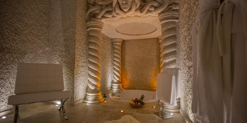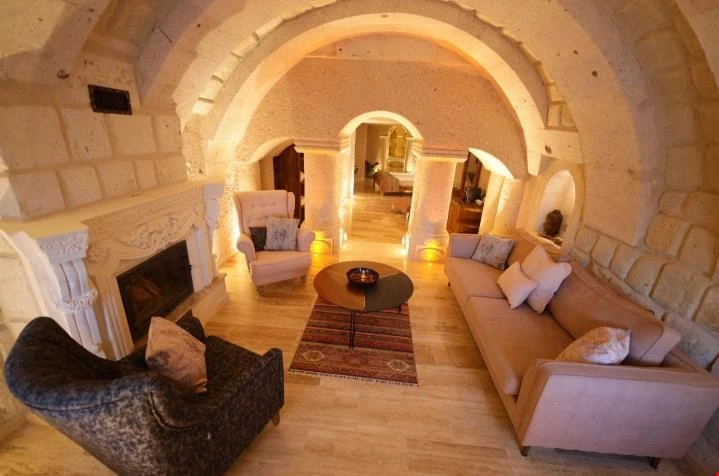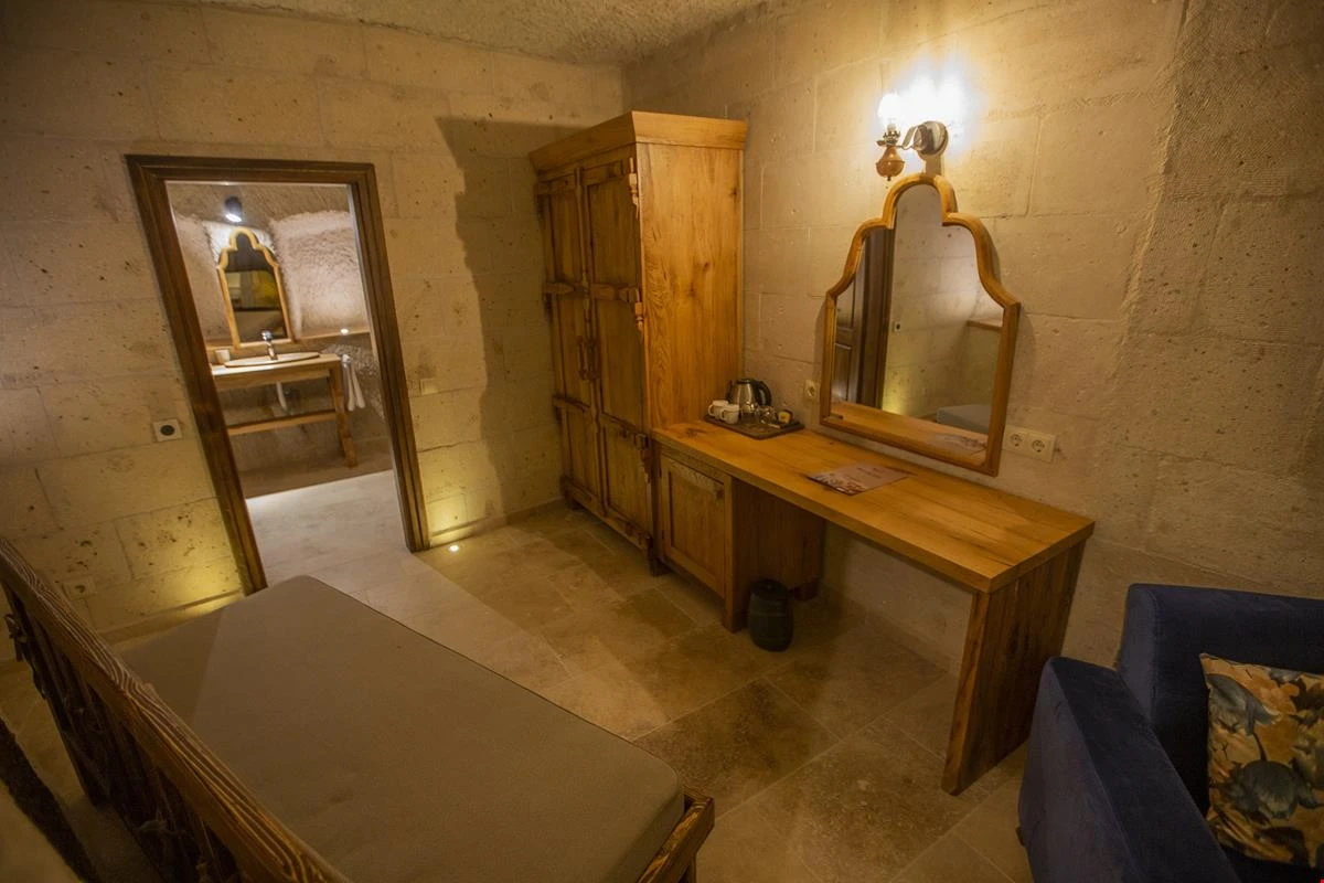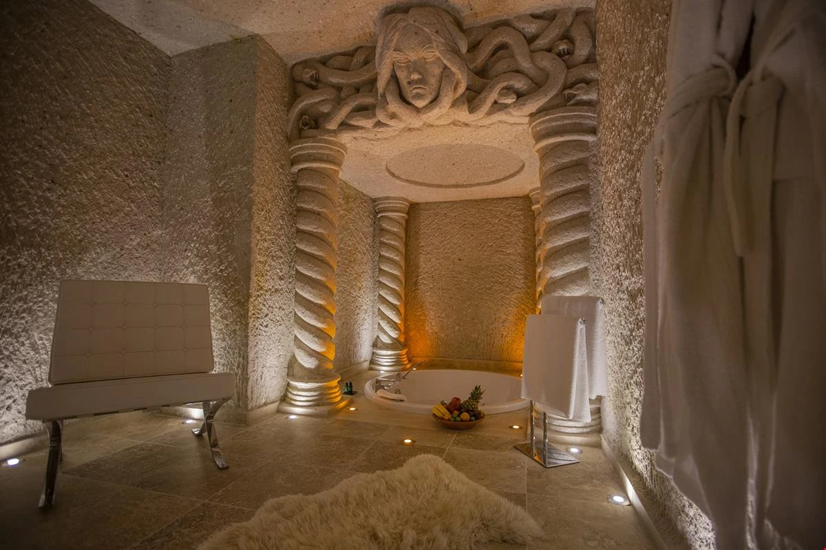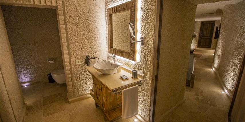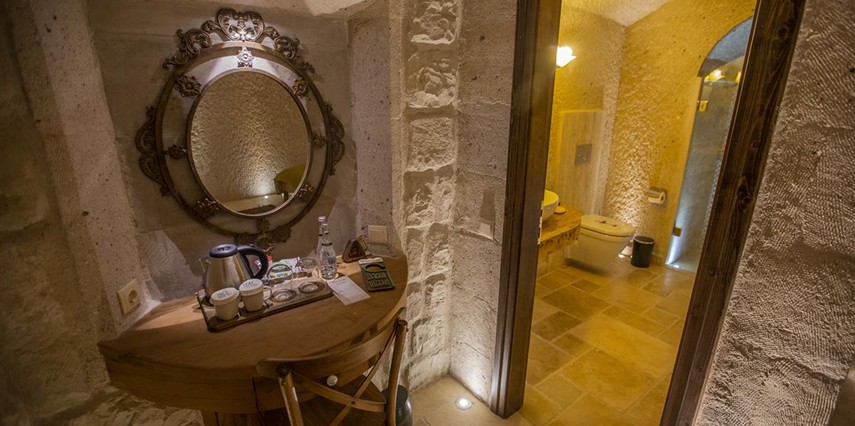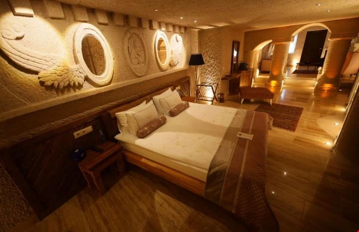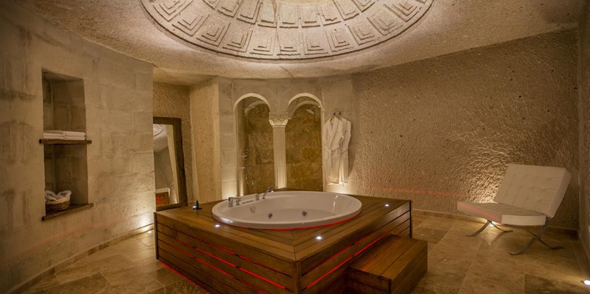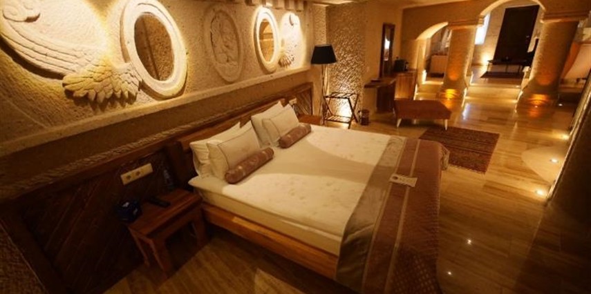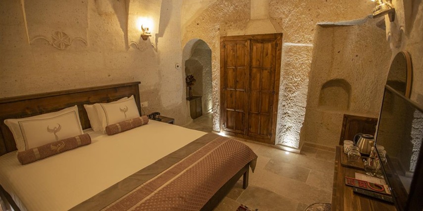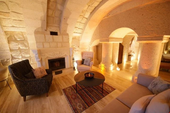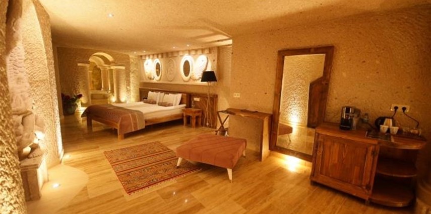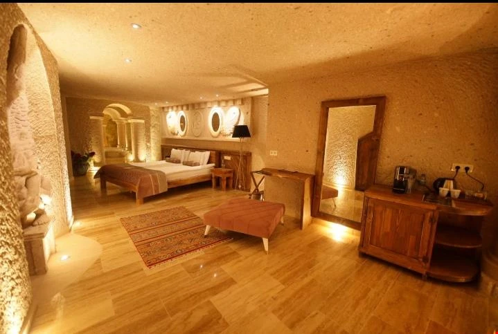 Nino Cave Suites Cappadocia” ismini MS 400’lü yıllarda aynı bölgede bir mağara’da doğmuş ve zamanla dünyaca ünlenmiş “Azize Nino” dan almaktadır. İbrahimpaşa köyünün Ortahisara doğru uzanan Balkan Vadisi’ne bakan hakim tepe noktada konumlanmış otelimiz, 32 sofistike mağara suiti, tüm odalarında lüks banyo ürünleri ile değerli misafirlerine “butik yaşam-tarzı” bir konaklama hizmeti sunmaktadır. Kapadokyanın tam kalbinde yer alan İbrahimpaşa köyü peribacalarıyla çevrilidir. Kapadokyanın turistik bölgeleri olan Ortahisar, Göreme ve Uçhisar’a 5 dakika; Ürgüp ve Avanos’a 15 dakika mesafededir. Nevşehir havalimanına 45 dakika, Kayseri havalimanına 1 saat mesafededir.