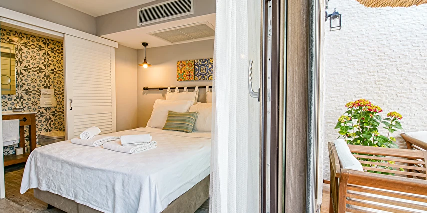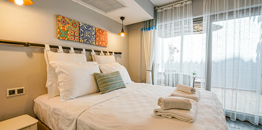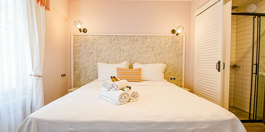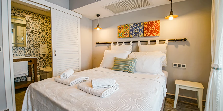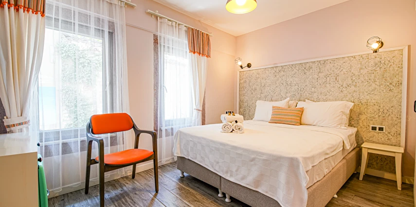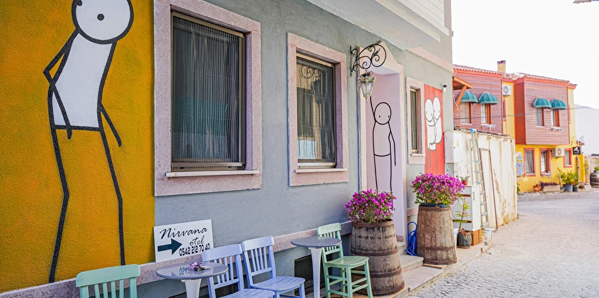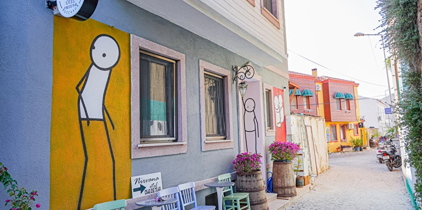 Otelimiz Bozcaada vapur iskelesine yürüme mesafesindedir Ayrıca yol yokuş değil düzdür. Otelimiz kafe ve restoranlara Rum Mahallesi'ne 50 metre yürüme mesafesindedir.