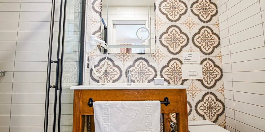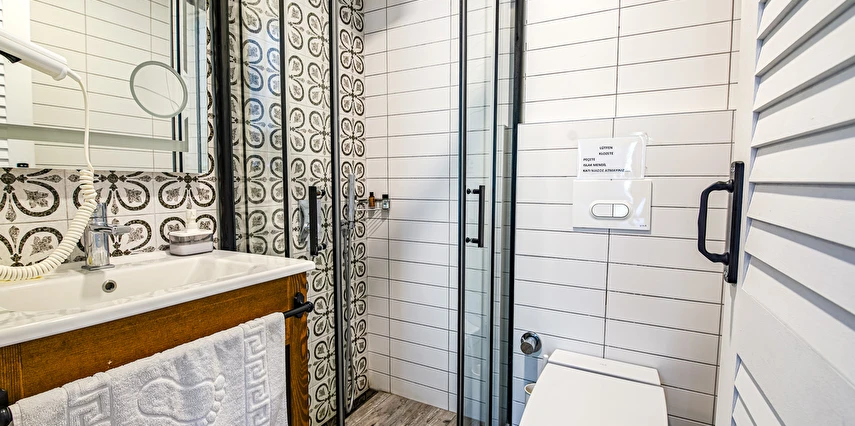 Odalarımızda zemin yerden ısıtmalıdır gardırop klima lcd tv wifi minibar banyo duş havlu banyo malzemeleri saç kurutma makinesi bulunmaktadır.