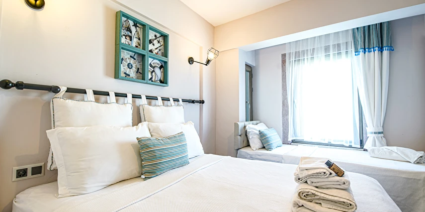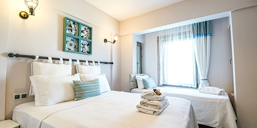Nirvana Otel yenilenen odalarıyla oda kahvaltı konseptinde hizmet vermektedir güler yüzlü personeli ve konforlu odalarıyla iş veya tatil amaçlı seyahatlerinizde sizleri misafir etmekten mutluluk duyarız otel misafirlerimize kahvaltı hizmetimiz deniz kenarında serpme kahvaltı şeklinde sunulmaktadır .
