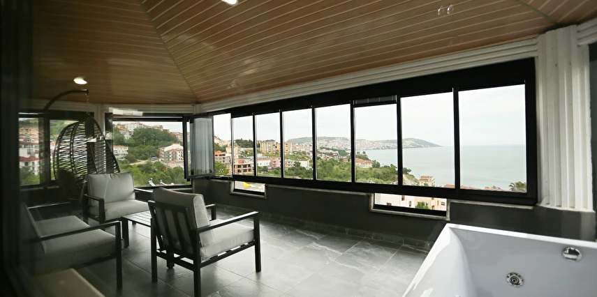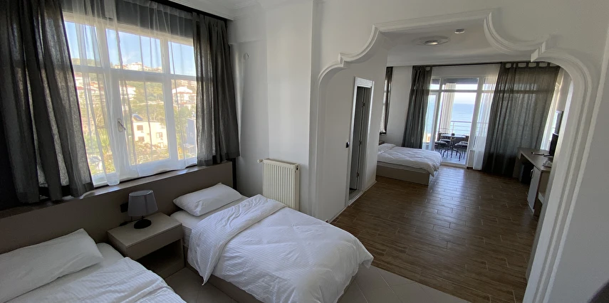 Daha Fazla GösterNo57 Suites Karadeniz in incisi Sinop şehrinde doğal güzelliklerini bünyesinde barındıran eşsiz panaromik deniz manzarası ve konumu ile mobil plajına 200 mt , Sinop şehir merkezine 2 km , Sinop hava limanına ve otogara 5 km uzaklıktadır . Tatilinizi en iyi şekilde geçirmeniz için birbirinden farkı konaklama seçenekleriyle dizayn edilmiş toplam 15 odası ile siz değerli misafirlerimizin hizmetindedir. No57 Suites günlük hayatın stresi ve yorgunluğundan uzaklaşıp enerjinizi tazelemek için muhteşem denizi ve yemyeşil doğasıyla Sinop ta keyifli ve huzurlu bir tatilin kapısını aralıyor.