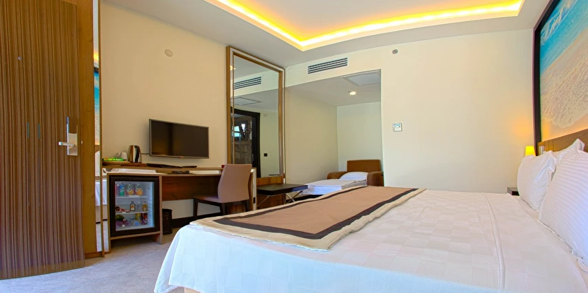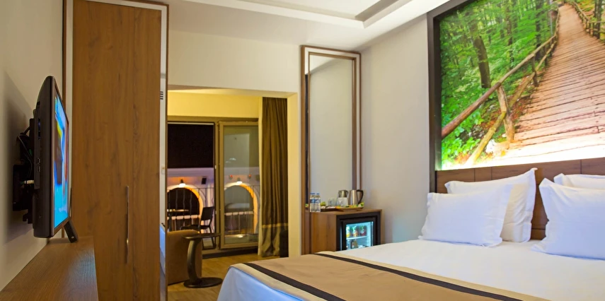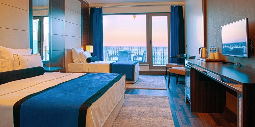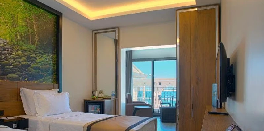 Daha Fazla GösterTürkiye’nin en kuzeyinde, bambaşka bir iklimi hissedeceğiniz tesis, size büyülü bir dünyanın kapılarını açıyor. 8 dönümlük araziye konumlanmış olan otelimiz, 4 bloktan oluşuyor ve 3 bloktan muhteşem bir deniz manzarası görülebilirken, 1 blok da yeşilin her tonunu görebileceğiniz manzarası ile sizi karşılıyor. 63 adet odaya sahip olan otelimizde Deluxe Triple ve Junior Suit odalar ile birlikte geniş bir çeşitlilik mevcut. Üstelik odaların 50’den fazlasının balkonlu olması, kuzeyin muhteşem havasını daha fazla solumanızı sağlıyor. Ayrıca sosyal hassasiyetlere sahip olan tesisimizde 1 adet de engelli odası mevcut.