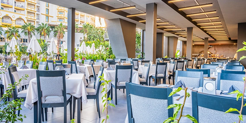 Türk kahvesi ücretsizdir. Ala Carte Restoranlar 4 gece ve üzeri konaklamalarda 1 defa 1 mutfak ücretsizdir. Rezervasyonludur. Kullanım hakkı her konaklama için bir defaya mahsustur. Tüm ithal alkollü içkiler, şişelenmiş içecekler, Taze Sıkılmış meyve suları ücretlidir.