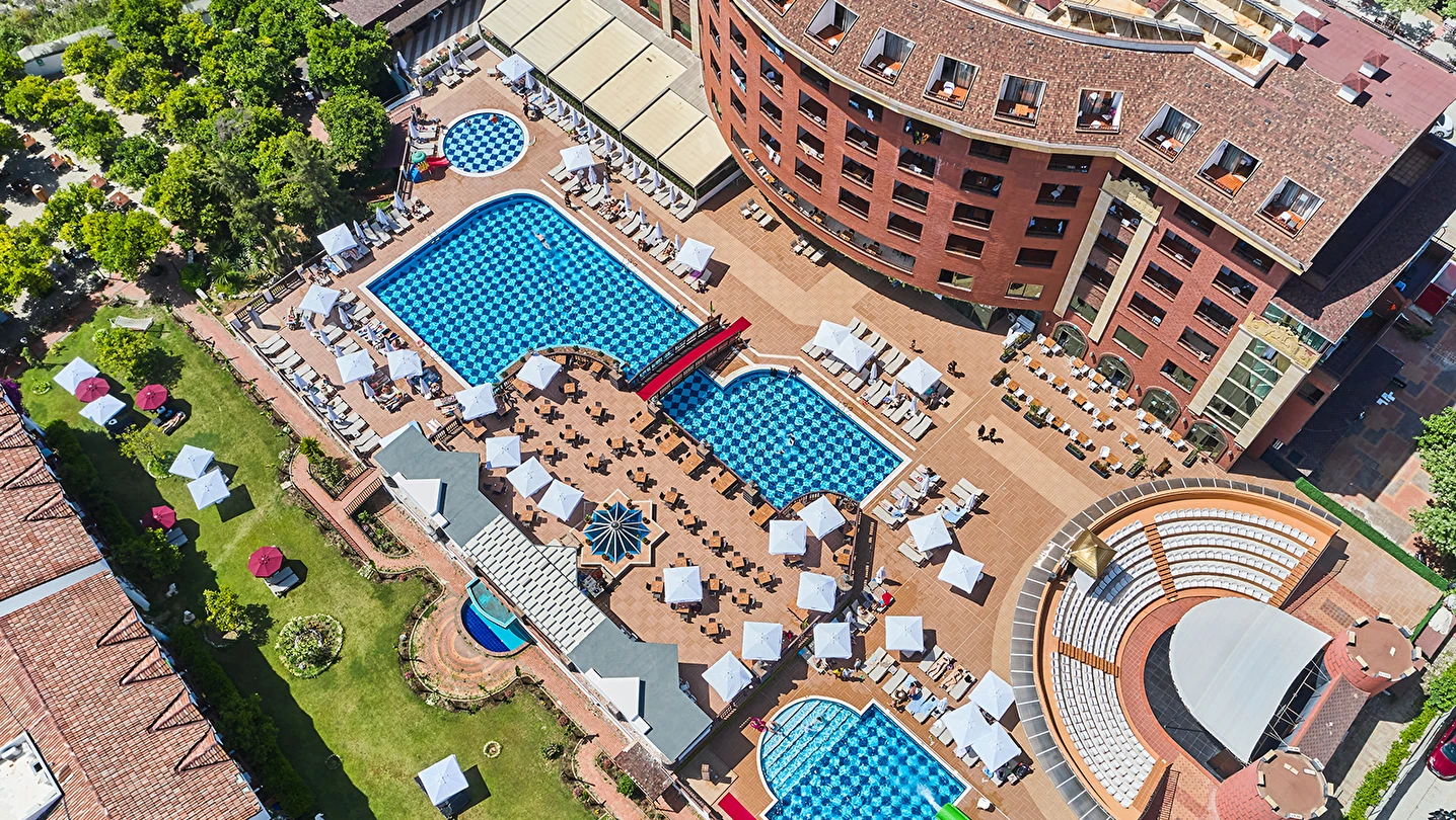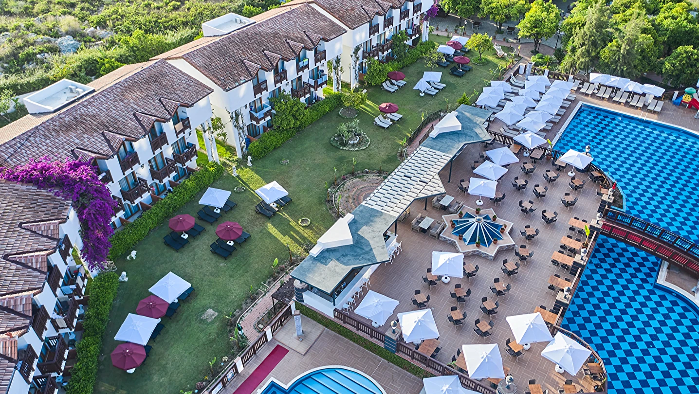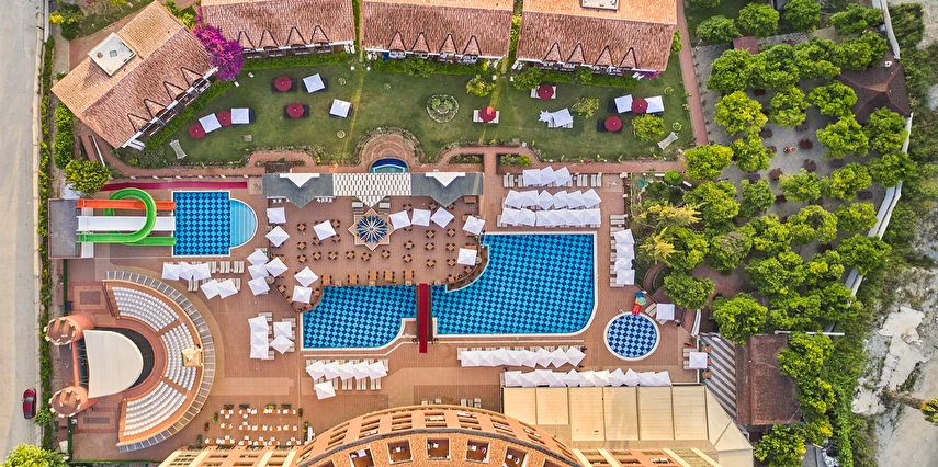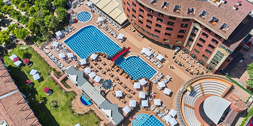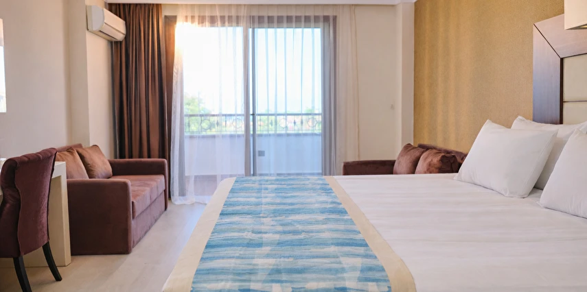 Sabah kahvaltısı, öğle ve akşam yemekleri açık büfe olup tesisin belirlediği markalar dahilinde yerli alkollü ve alkolsüz içecekler 24 saat ücretsizdir. Türk Kahvesi ücretsizdir. İthal içecekler ve taze sıkılmış meyve suları ücretli servis edilir.