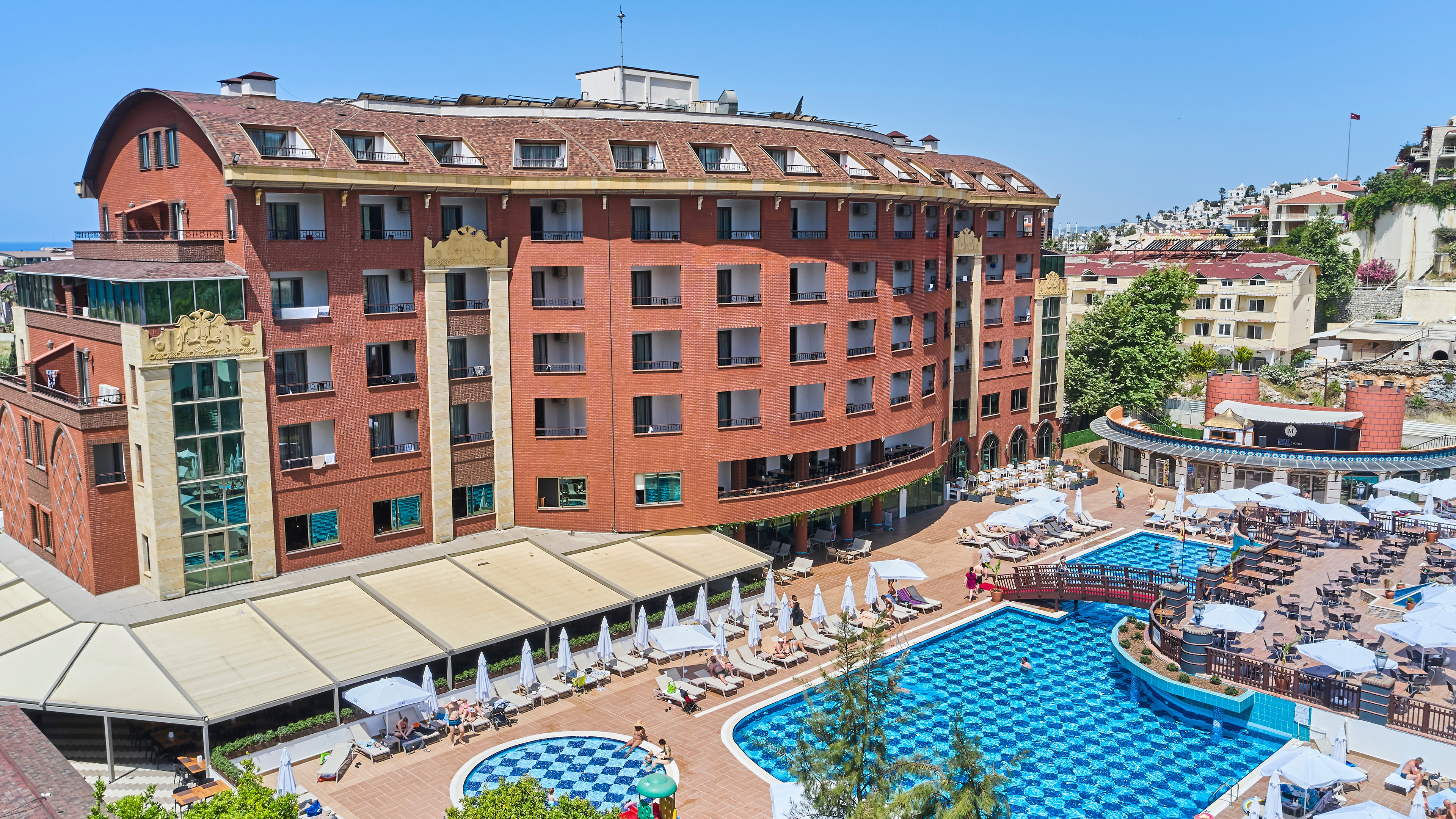 Sabah kahvaltısı, öğle ve akşam yemekleri açık büfe olup tesisin belirlediği markalar dahilinde yerli alkollü ve alkolsüz içecekler 24 saat ücretsizdir. Türk Kahvesi ücretsizdir. İthal içecekler ve taze sıkılmış meyve suları ücretli servis edilir.