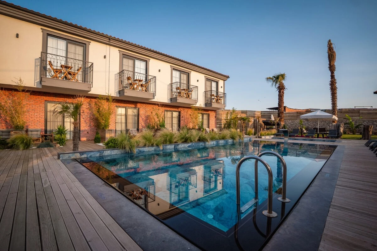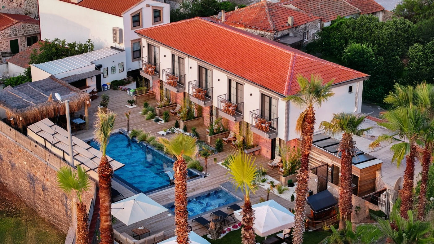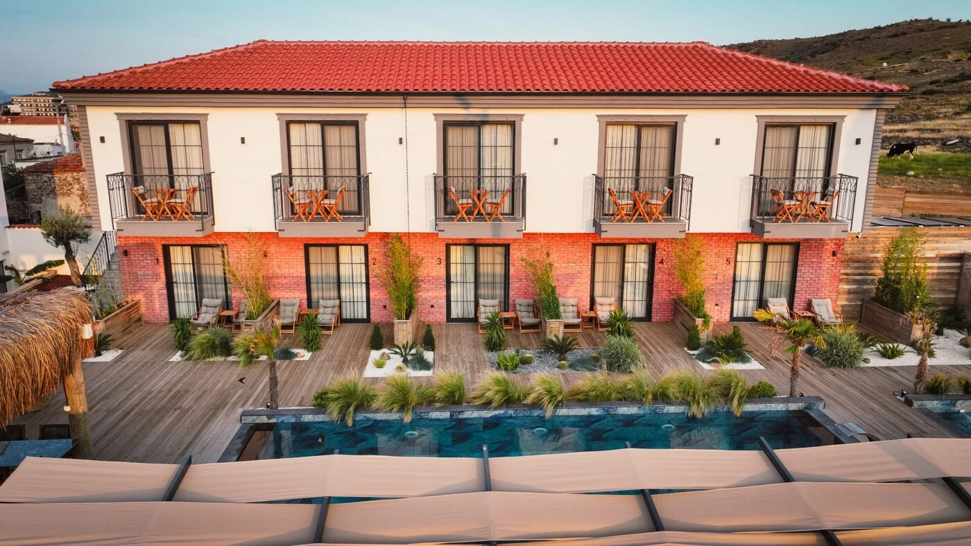 Ayvalık’ın eşsiz doğasında, 1 dönümlük yemyeşil bir alanda yer alan otelimizde hem dinlenip hem yenilenmeye hazır olun. 14 konforlu odamız, yetişkin ve çocuk havuzlarımız, zengin serpme kahvaltımız, Pool Bar’ımız ve güler yüzlü hizmet anlayışımızla sizi ağırlamaktan mutluluk duyarız. Aracınız için otopark, odalarınızda minibar, klima, TV, Wi-Fi ve çok daha fazlası burada sizi bekliyor.