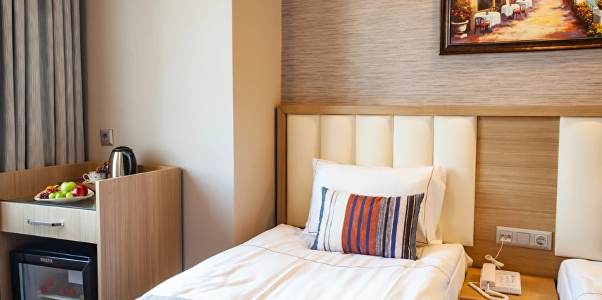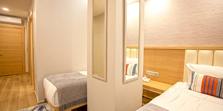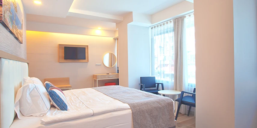Restoran ve barı bulunan otel24 saat açık resepsiyon ve oda servisi ile hizmet veriyor. Antalya’nın tarihi dokusu ile bütünleşmiş bir noktada bulunan otel, eksi kent merkezi Kaleiçi, muhteşem manzarasıyla Antik Liman, Hadrian Kapısı, Yivli Minare, Hıdırlık Kulesi gibi şehrin en turistik mekanlarına yürüme mesafesinde konumlanıyor.