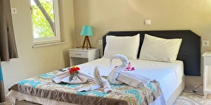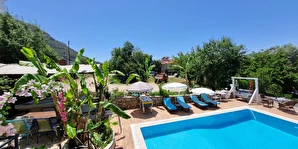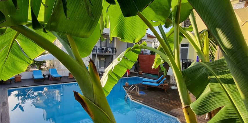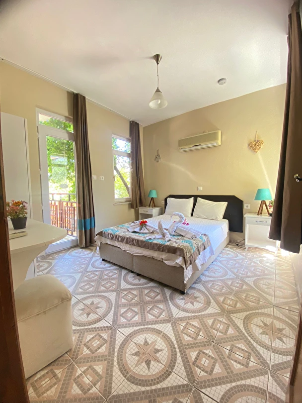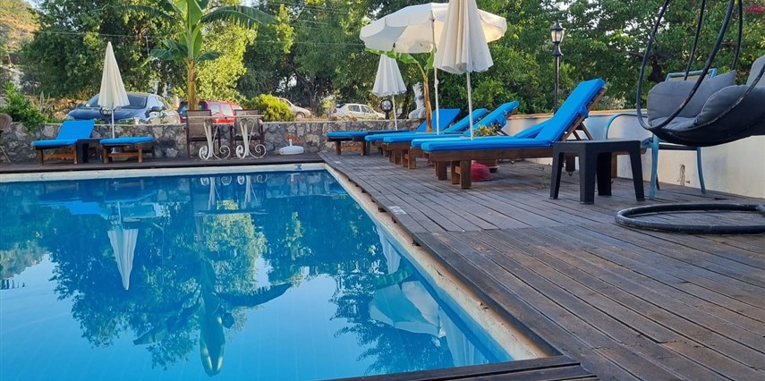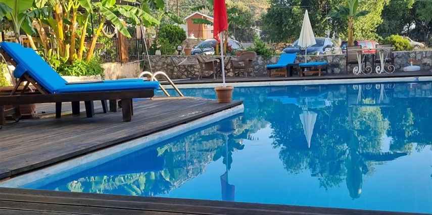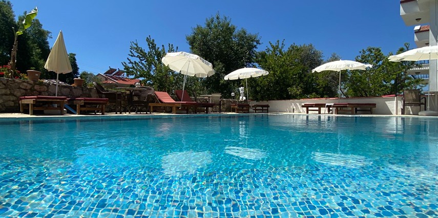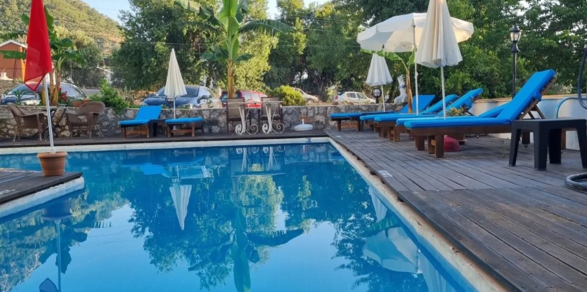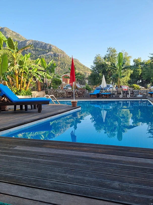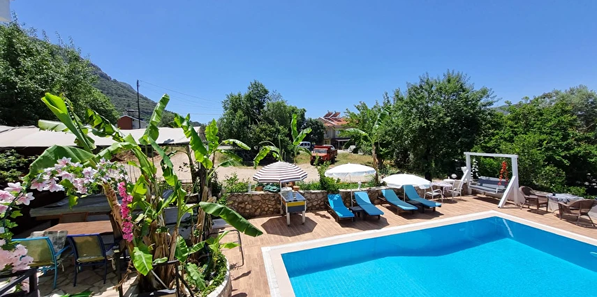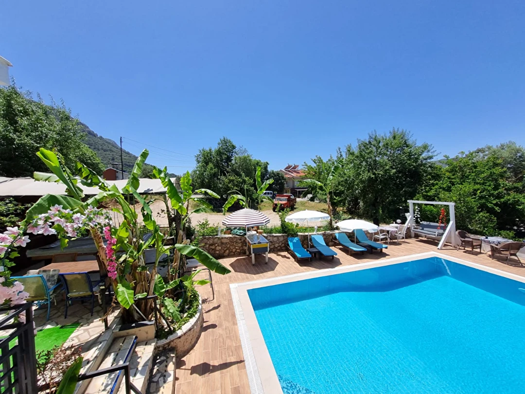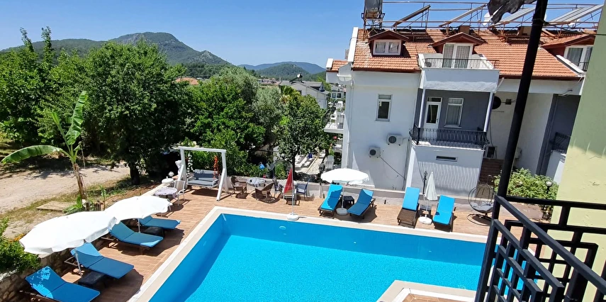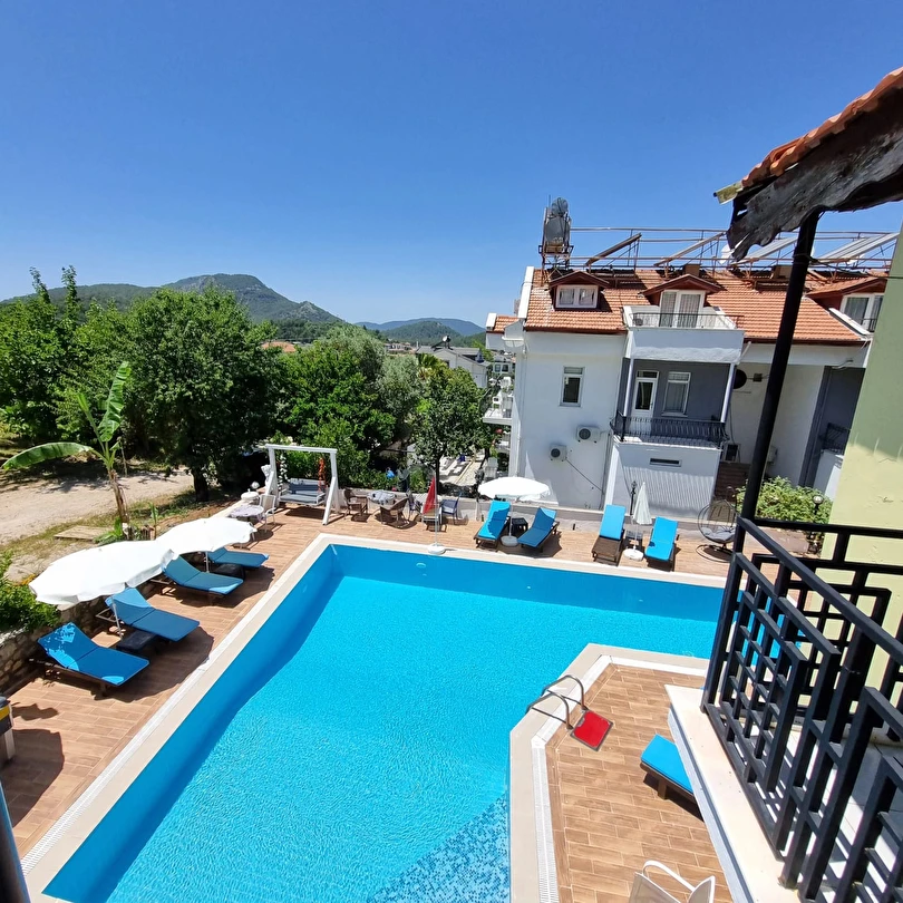 ölüdeniz babadağın eşşsiz yeşillikerinin eteğinde bulunan tesisimiz.havuzlu ve doğayla iç içe sakin ve huzurlu bir ortam sunmaktadır.ölüdenizin eşsiz doğasıyla tatil fırsatı sunuyoruz .1+1 odalarda olsuşan işletmemiz .ulaşımı ve konumu mükemmel olup ölüdeniz plajına sadece 2,5 km uzaklıkta hisarönü barlar sokağı yürüş mesafesinde 500 metre .dünyaca ünlü babadağ teleferik merkezine 750 metre uzaklıkta.tarihi kayaköy ve gemiler plajına 6 -8 km mesafedir .eşyalı genel gereclerin mevcut oldugu odalarımızda ailenizle ve arkadaşarınızla güzel bir tatil gecirmeniz için tüm olanaklarımızla hizmet vermeye calısıyoruz .