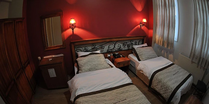 İzmir Konak’ta tarihi bir yapıda bulunan ve misafirlerini nostaljik bir atmosferde ağırlayan Otel Antikhan, sabahları zengin bir kahvaltıyla misafirlerine güne güzel başlangıç yapma fırsatı sunuyor. Tesiste otopark hizmeti ve çamaşırhane bulunuyor.