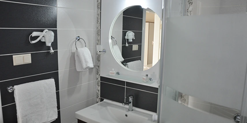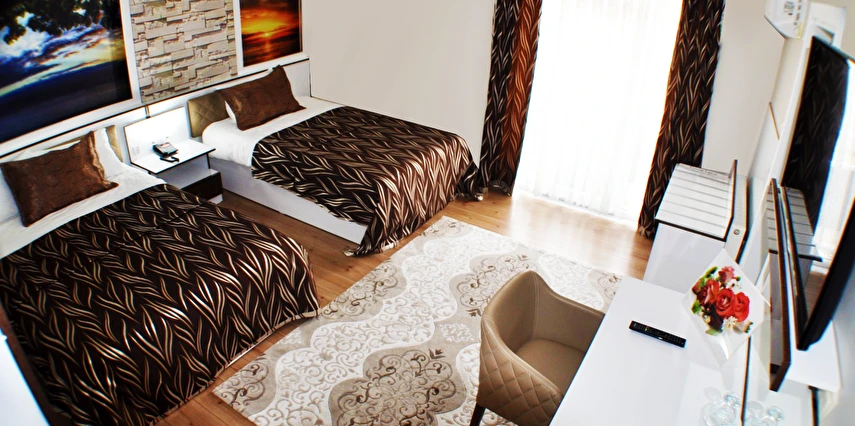 Ev sıcaklığında tasarlanan standart odalar ve 1+1 süitler, konforlu bir konaklama deneyimi sunarken; güler yüzlü personel hizmet anlayışıyla misafir memnuniyeti ön planda tutulur. Tesiste resmi organizasyonlara ve iş toplantılarına uygun toplantı salonu, lezzetli menüler sunan restoran, spor severler için fitness merkezi bulunmaktadır.
