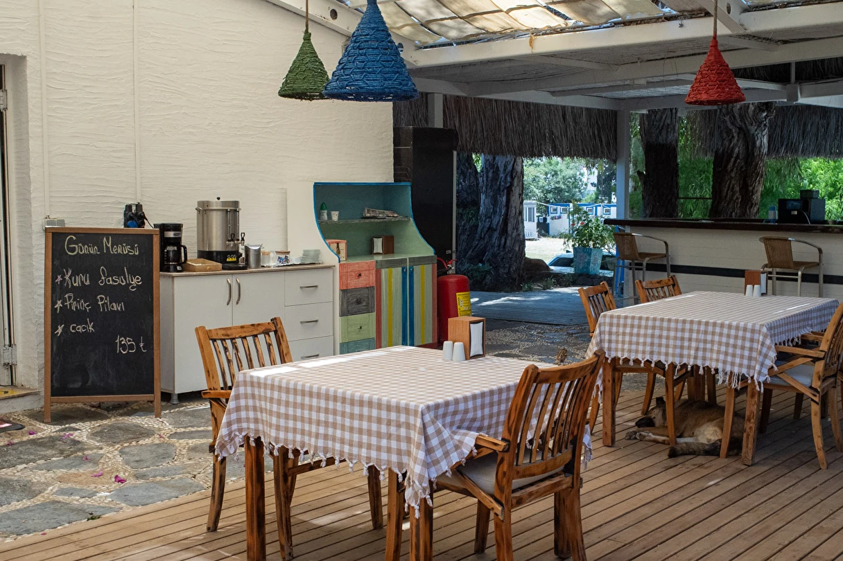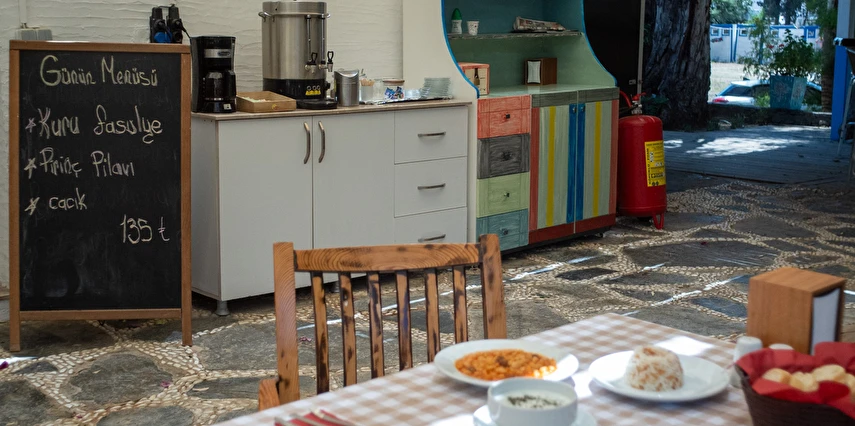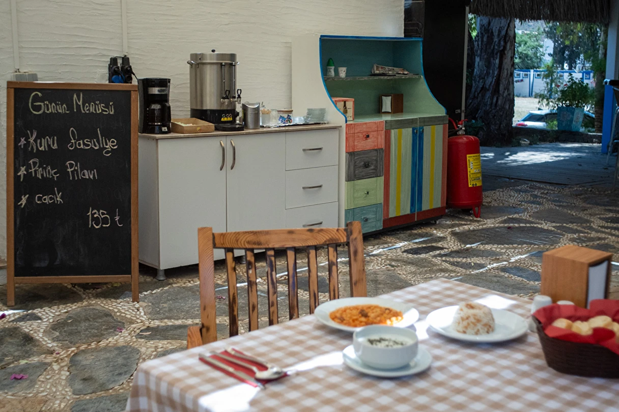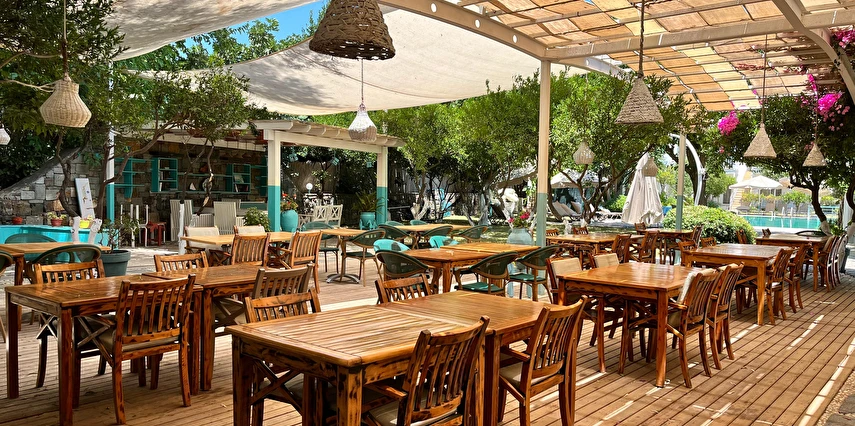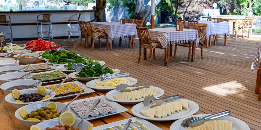 Yaz aylarında güne zengin açık büfe kahvaltıyla başlayabilir; öğle ve akşam yemeklerinde taze sebzeler, etler ve Ege’nin meşhur balıklarını içeren yerel lezzetleri tadabilirsiniz. Akşamları ise otelin huzurlu atmosferinde güzel müzik eşliğinde keyifli vakit geçirebilirsiniz. Sezon dışında mutfağımız kapalıdır, ancak kahvaltı hizmeti sunulmaktadır.