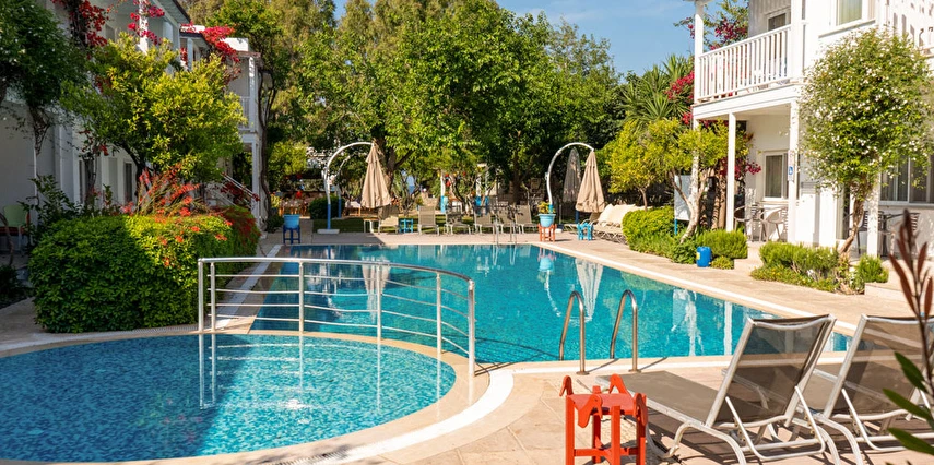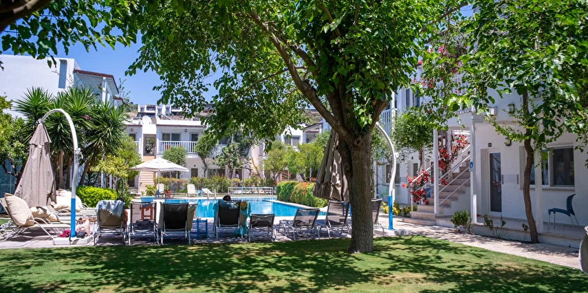 Otel Gümüşlük, Bodrum’un en huzurlu ve özgün tatil beldesi Gümüşlük’te misafirlerine sıcak, samimi ve doğayla iç içe bir konaklama deneyimi sunan özel bir tesistir. Ağaçlarla çevrili geniş bahçesi, şık mimarisi ve bakımlı açık yüzme havuzuyla hem dinlenmek hem de sevdiklerinizle keyifli vakit geçirmek için ideal bir mekân yaratır.