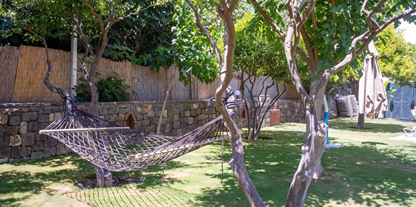 Tesis, Ege’nin tertemiz havası ve maviyle yeşilin buluştuğu sahile sadece birkaç adım uzaklıkta konumlanmıştır; bu sayede denizin ve güneşin tadını çıkarırken doğanın dinginliğiyle bütünleşebilirsiniz.