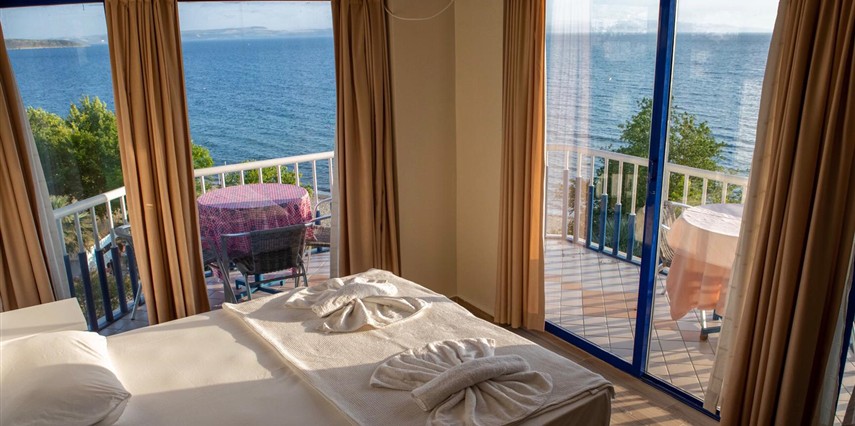 Erdek bölgesinde konumlanan tesis, denize sıfır konumuyla dikkat çekiyor. Tesis Oda Kahvaltı konsepti ile misafirlerini ağırlıyor. Tesis, Edremit Koca Seyit Havaalanı'na 160 km, Erdek'e 2 km, Ayvalık'a 206 km mesafede konumlanıyor.