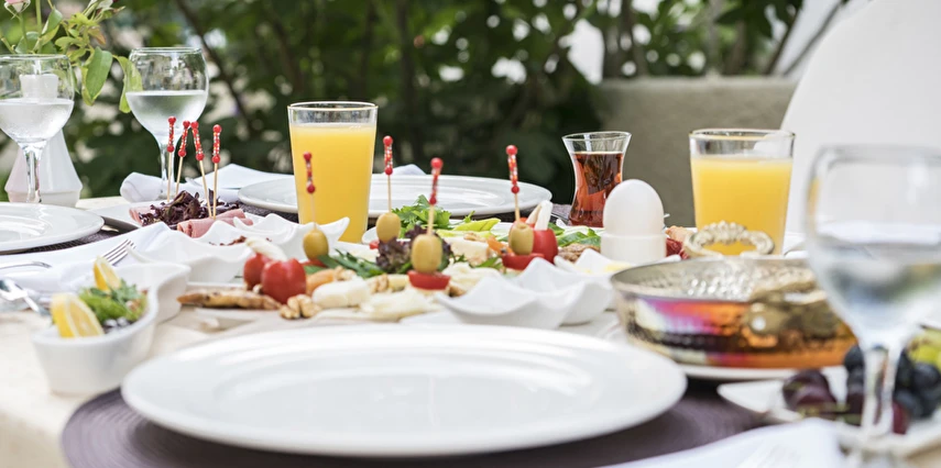 Restoranın açık ya da kapalı yemek alanlarında yemeklerin tadını çıkarabilirsiniz. Menüde geleneksel Türk, Fransız, İtalyan, Hint ve vejetaryen yemekler bulunur. Havuz başındaki bar gün boyunca serinletici içkiler ve hafif atıştırmalıklarla hizmetinizdedir. Oda servisi de sağlanmaktadır.