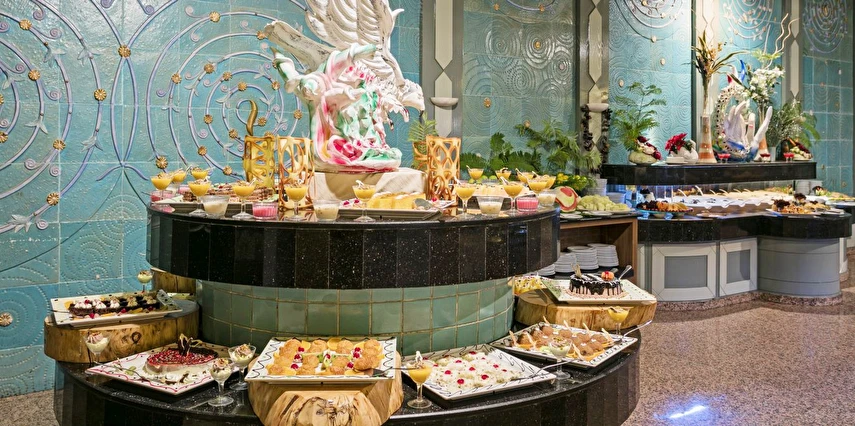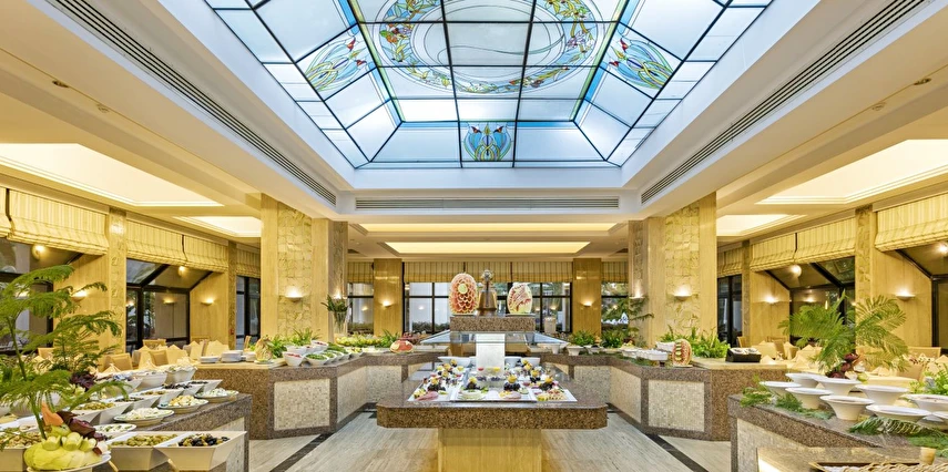 Sabah kahvaltısı, öğle ve akşam yemeği açık büfe olup, tesisin belirlemiş olduğu markalar dahilinde yerli alkollü ve alkolsüz içecekler 23:00'a kadar ücretsizdir, 23:00 ile 08:00 saatler arasında ücretlidir.