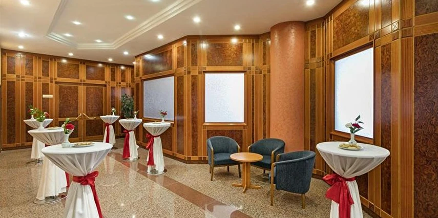Daha Fazla GösterKonya’nın merkezi noktalarına kolay ulaşım imkânı sunan Özkaymak Konya Hotel, iş ve turistik amaçlı seyahat eden misafirlerine konforlu ve ayrıcalıklı bir konaklama deneyimi sunar. Modern tasarıma sahip, ev rahatlığını aratmayan odalarıyla misafirlerinin ihtiyaçlarına cevap verirken olanaklarıyla da dinlenme ve yenilenme imkânı sağlar.
