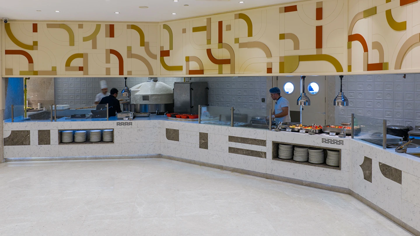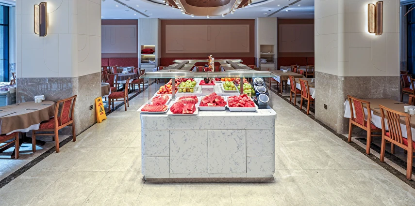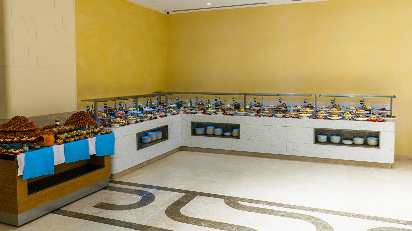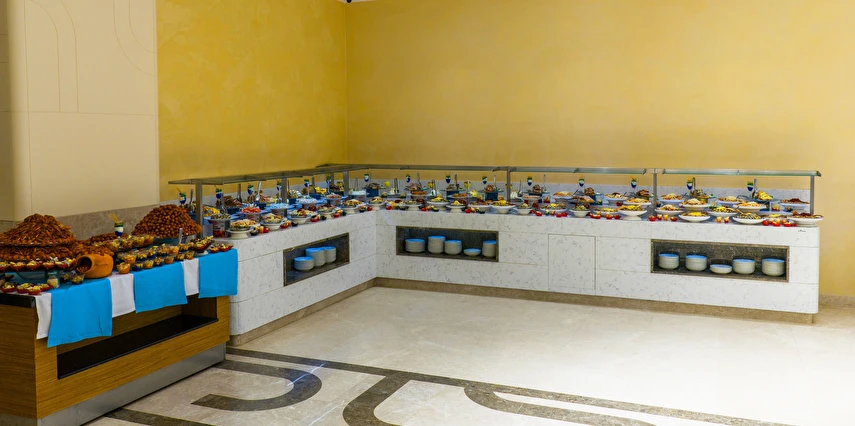 Sabah kahvaltısı, öğle ve akşam yemekleri açık büfe olup, tesisin belirlemiş olduğu markalar dahilinde yerli alkollü ve alkolsüz içecekler 24 saat ücretsizdir.