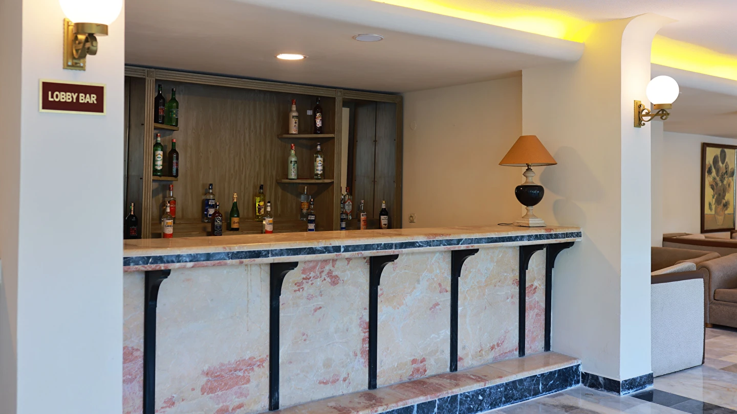 Lobby Bar (24 Saat)(7/24 Yerli ve bazı Alkollü içecekler, alkolsüz, Soft içecekler ve türk kahvesi (Yemek saatlerinde kapalıdır. )