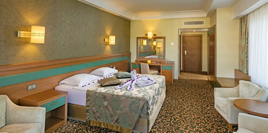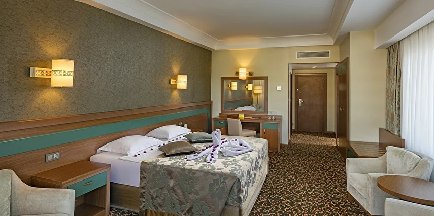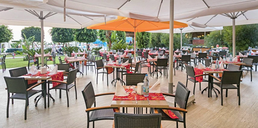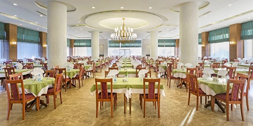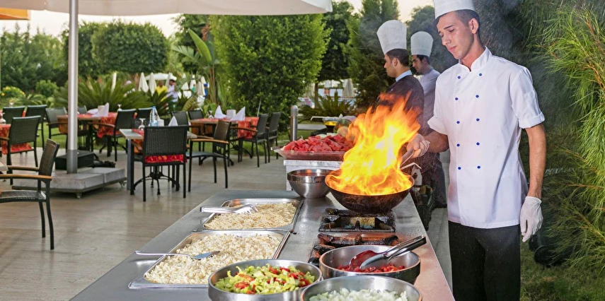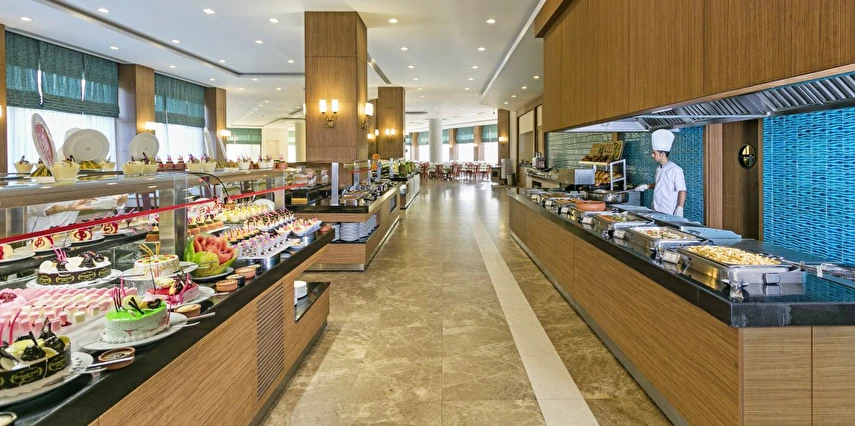 Sabah kahvaltısı, öğle ve akşam yemekleri açık büfe olup, tesisin belirlemiş olduğu markalar dahilinde yerli alkollü ve alkolsüz içecekler 24 saat ücretsizdir. Türk kahvesi ücretsizdir.
