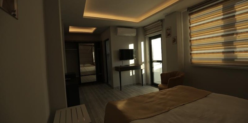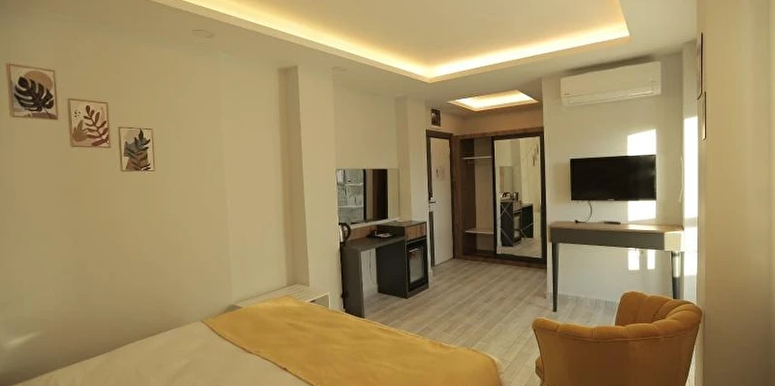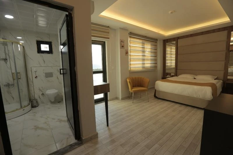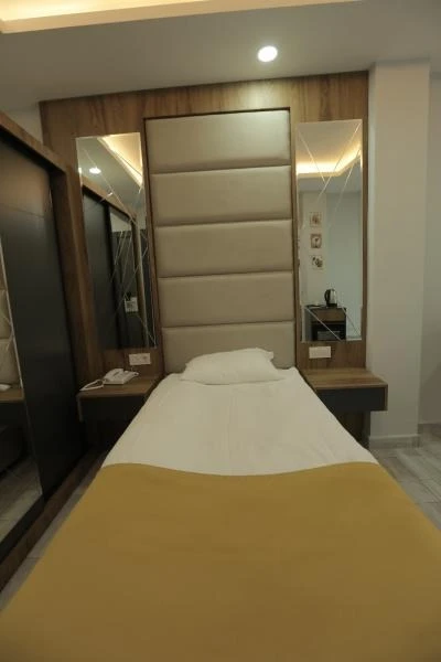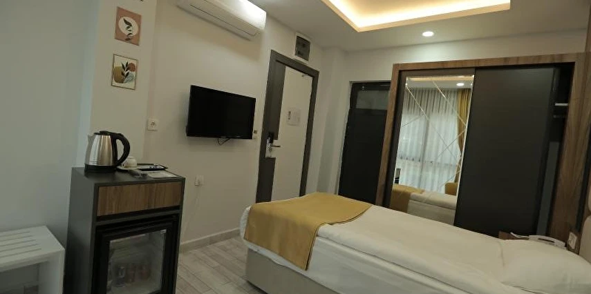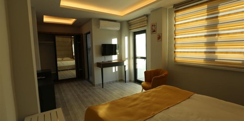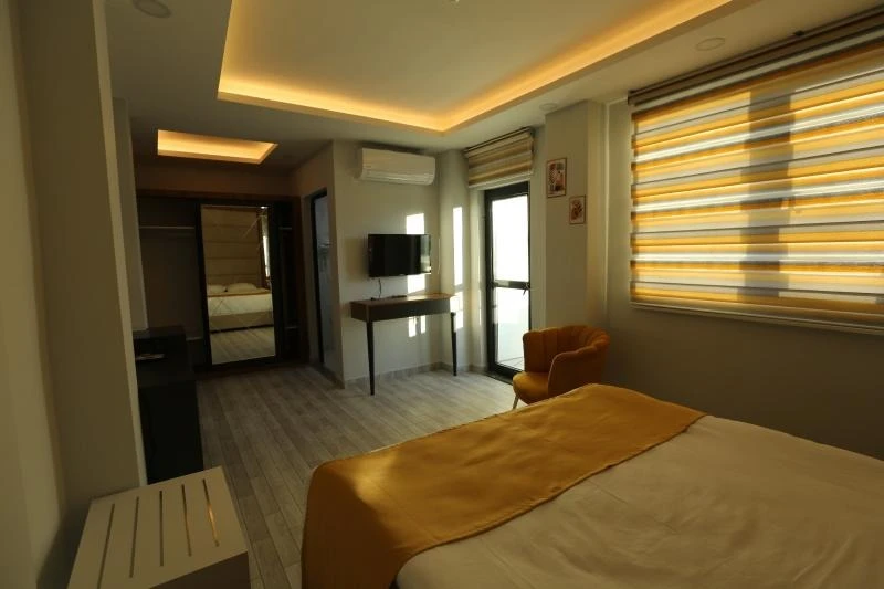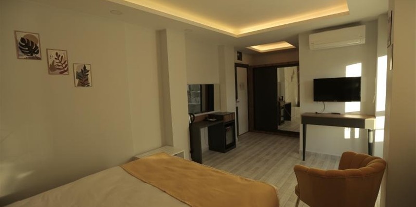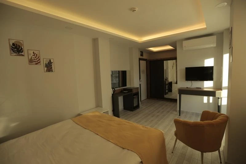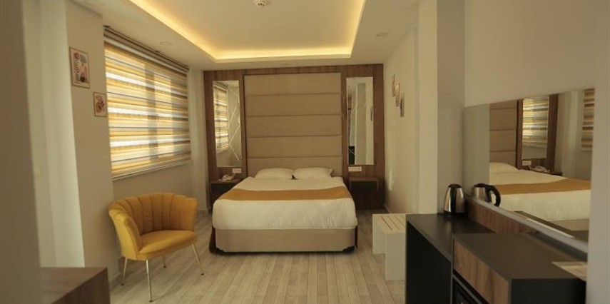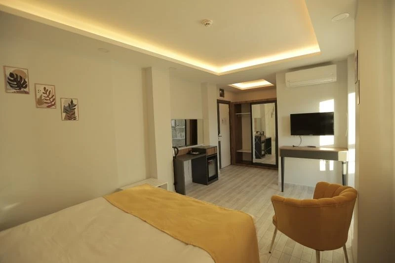 Konforlu ve sade tasarıma sahip odalar, misafirlerin ihtiyaçlarına yönelik donanımlarla hazırlanmıştır: