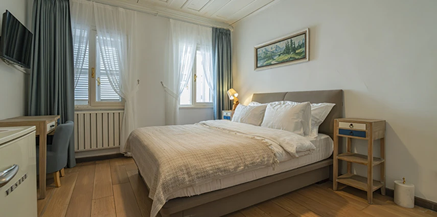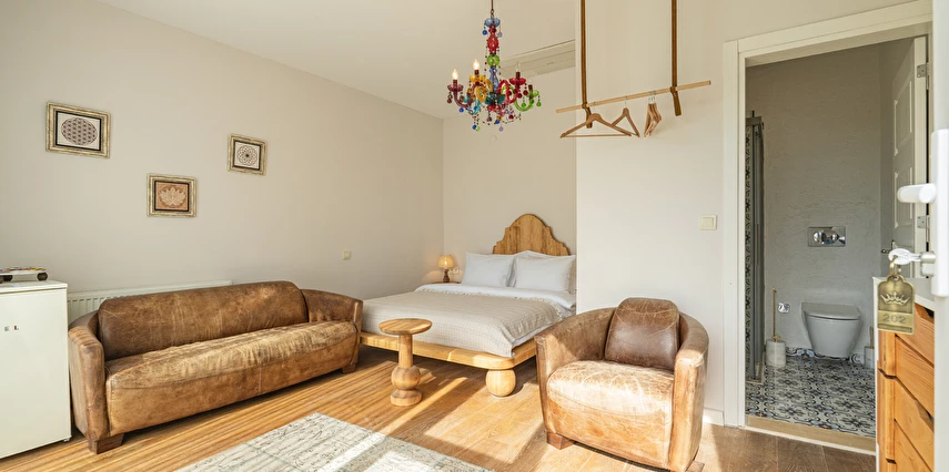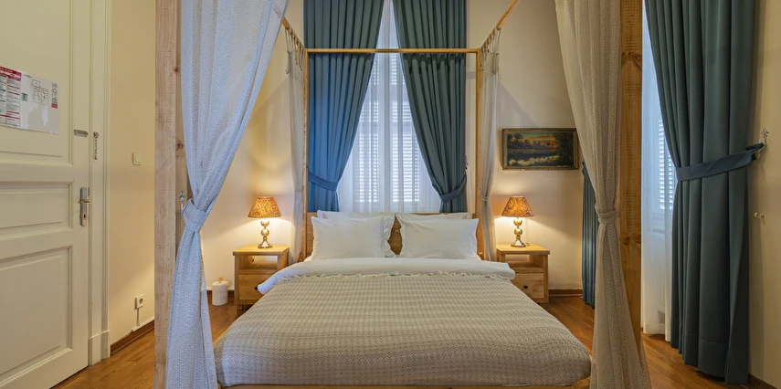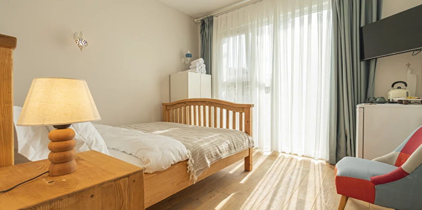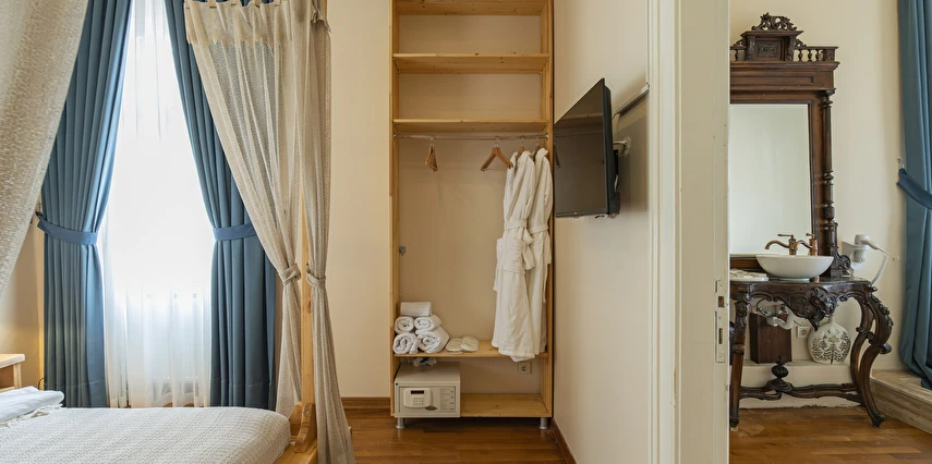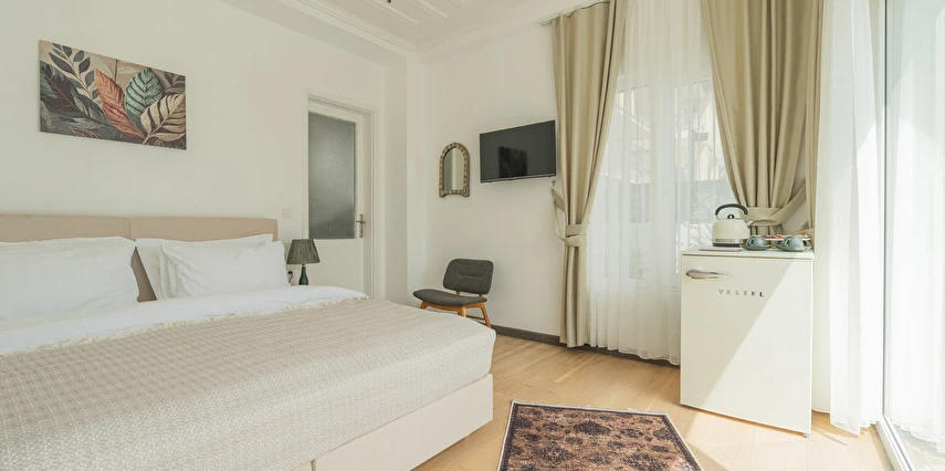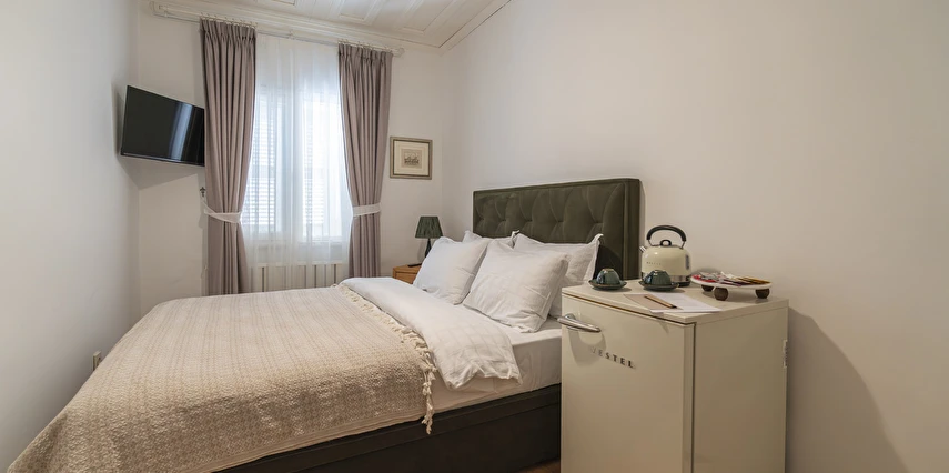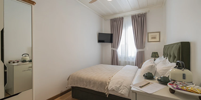 Daha Fazla GösterBüyükada’nın merkezine yürüme mesafesinde olmakla beraber biraz daha izole ve sakin bir lokasyon isteyenlerin tercihi olan Palais Büyükada, zarafetiyle öne çıkmaktadır. Otelin mimarisi Köşk ve Yalı tipi yapılarının her ikisinden de izler taşır. Bahçesinden içeriye adımınızı attığınız anda sizi yeşillikler içerisinde oldukça ferah bir bahçe ve rengârenk çiçekler karşılar. Kapısında aslan heykeli olan büyük ana kapı, en üst katta bulunan yüksek tavanlı üç farklı tipte odaya açılır. Aynı katta bulunan ortak kullanımlı ve otelin en yüksek manzara noktası olan teras, sabah kahvaltılarının vazgeçilmez konumudur. Bir kat aşağısı yine birbirinden farklı tasarımı ve hepsinin de kendine has tasarımı, kullanım avantajları olan üç odanın yanı sıra, çoğunlukla kahve keyfi yapmayı sevenlerin tercihi olan ortak kullanımlı balkon, alternatif bir dinlenme alanı sunmaktadır. Bu katın da altındaki katta bulunan bitişik nizamlı üç oda ise güne deniz manzarası ile uyanmayı ve çıplak ayakla çimlere basmayı, doğayı hissederek yaşamayı sevenlerin öncelikli tercihidir. Diğer tüm odalardan daha bağımsız olan “Terevintos” nam-ı diğer kaptan köşkü ise kendine özel tatlı küçük balkonundan panoramik şekilde seyredilen sedef adasının manzarasıyla en romantik odalarımızdan biridir.
