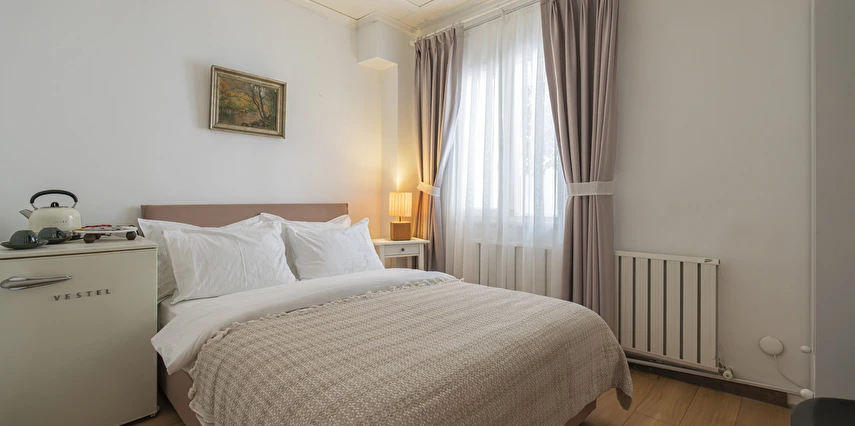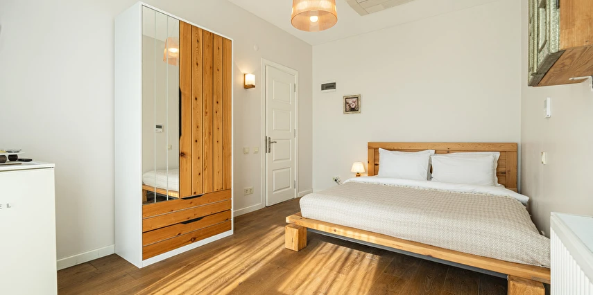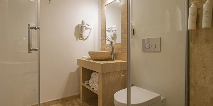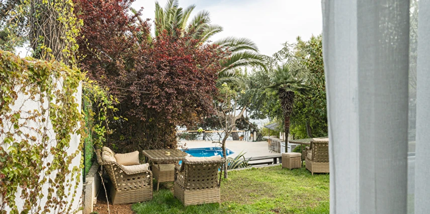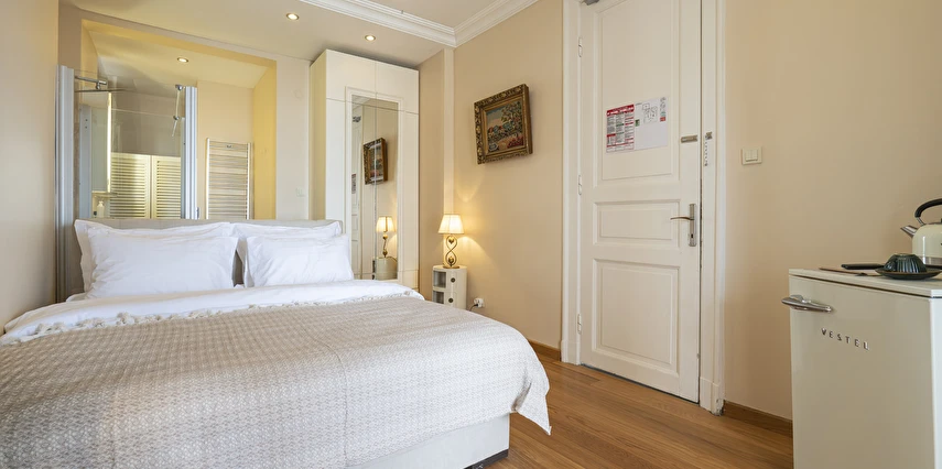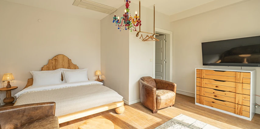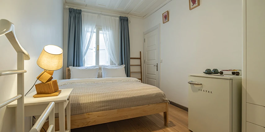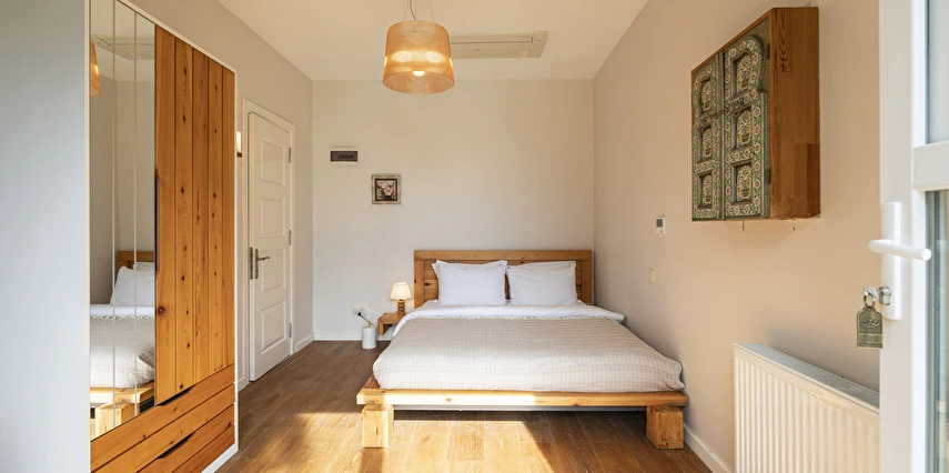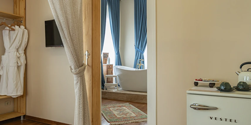 Daha Fazla GösterBüyükada’nın merkezine yürüme mesafesinde olmakla beraber biraz daha izole ve sakin bir lokasyon isteyenlerin tercihi olan Palais Büyükada, zarafetiyle öne çıkmaktadır. Otelin mimarisi Köşk ve Yalı tipi yapılarının her ikisinden de izler taşır. Bahçesinden içeriye adımınızı attığınız anda sizi yeşillikler içerisinde oldukça ferah bir bahçe ve rengârenk çiçekler karşılar. Kapısında aslan heykeli olan büyük ana kapı, en üst katta bulunan yüksek tavanlı üç farklı tipte odaya açılır. Aynı katta bulunan ortak kullanımlı ve otelin en yüksek manzara noktası olan teras, sabah kahvaltılarının vazgeçilmez konumudur. Bir kat aşağısı yine birbirinden farklı tasarımı ve hepsinin de kendine has tasarımı, kullanım avantajları olan üç odanın yanı sıra, çoğunlukla kahve keyfi yapmayı sevenlerin tercihi olan ortak kullanımlı balkon, alternatif bir dinlenme alanı sunmaktadır. Bu katın da altındaki katta bulunan bitişik nizamlı üç oda ise güne deniz manzarası ile uyanmayı ve çıplak ayakla çimlere basmayı, doğayı hissederek yaşamayı sevenlerin öncelikli tercihidir. Diğer tüm odalardan daha bağımsız olan “Terevintos” nam-ı diğer kaptan köşkü ise kendine özel tatlı küçük balkonundan panoramik şekilde seyredilen sedef adasının manzarasıyla en romantik odalarımızdan biridir.