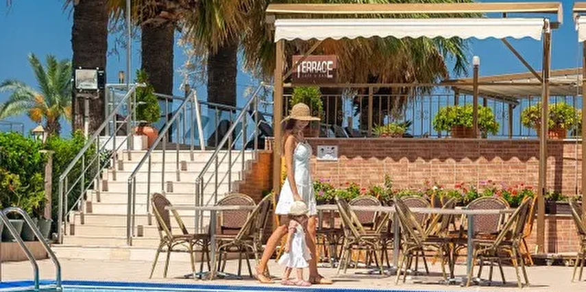 Sayısız tarihi güzellikleri olan Kuşadası’nın kalbinde , harika bir konuma sahip lüks bir oteldir. Ege Denizi'nin ve Kuşadası Yat Limanı'nın manzaralarına sahiptir. Plaja 25 metre mesafede yer alan Palm Hotel , Kuşadası merkezine yalnızca 5 dakika yürüyüş mesafesinde olup, İzmir Adnan Menderes Havalimanı'na 70km. uzaklıktadır. Dünyanın en önemli antik kentleri Efes'e 20 km., Didim, Milet & Priene'ye 45 km. olan uzaklığıyla kendinizi tarihin içinde hissedeceksiniz..
