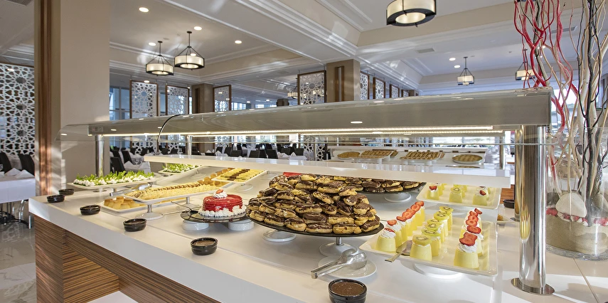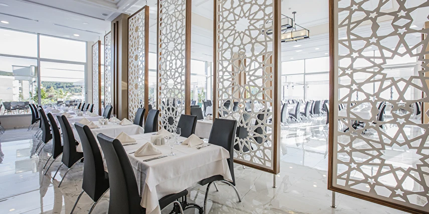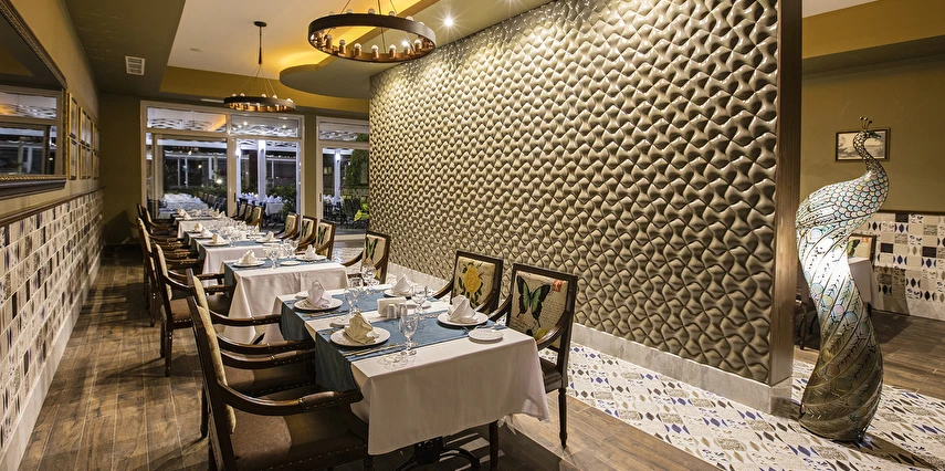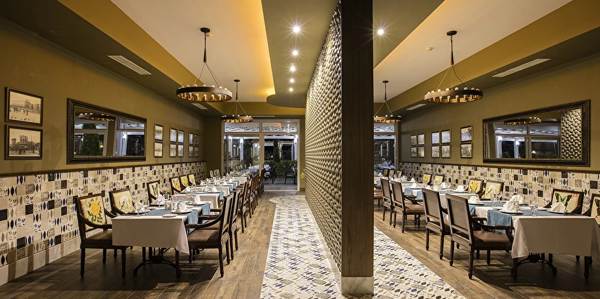 Türk A'la Carte Restoran (19:00 ile 21:30 saatleri arasında)(7 gece ve üzeri konaklamalarda 1 defalığına bir restoran ücretsiz)(Haftanın 6 günü açık)(Rezervasyonlu)