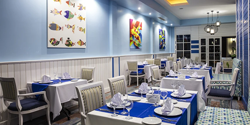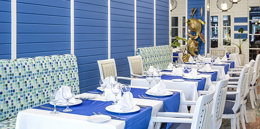Balık A'la Carte Restoran (19:00 ile 21:30 saatleri arasında)(7 gece ve üzeri konaklamalarda 1 defalığına bir restoran ücretsiz)(Haftanın 6 günü açık)(Rezervasyonlu)