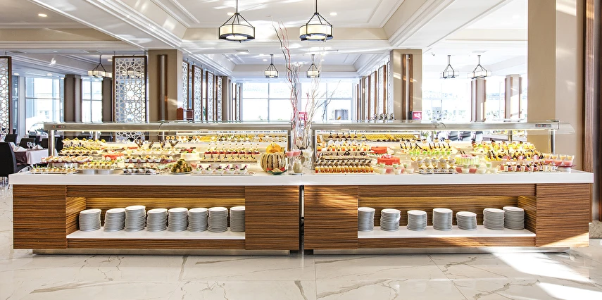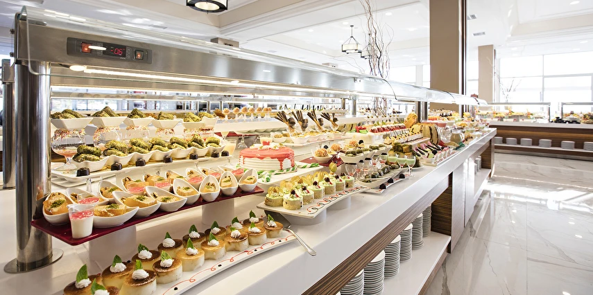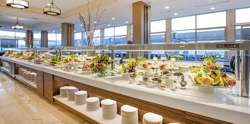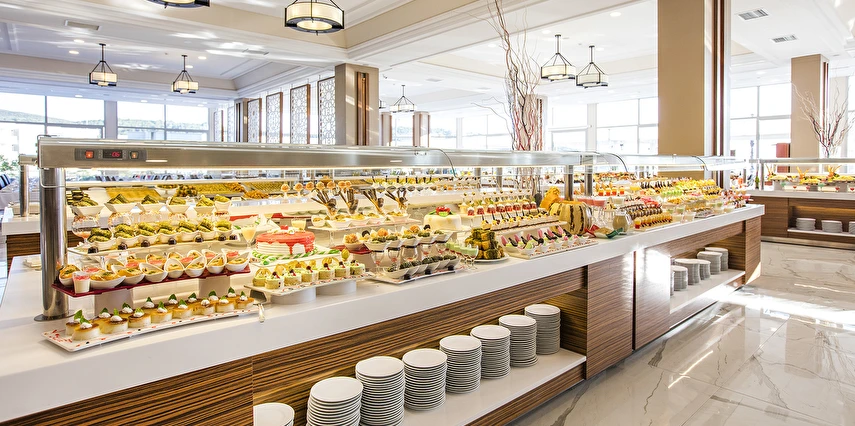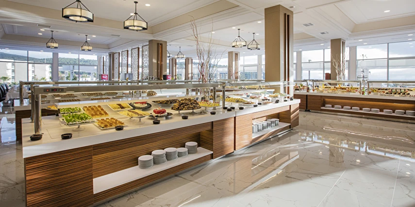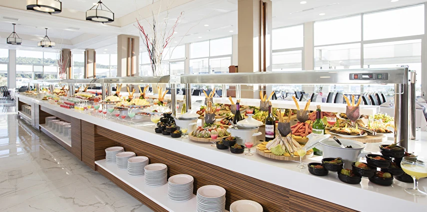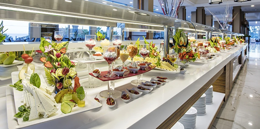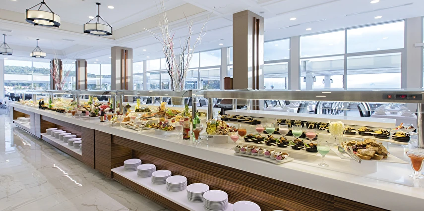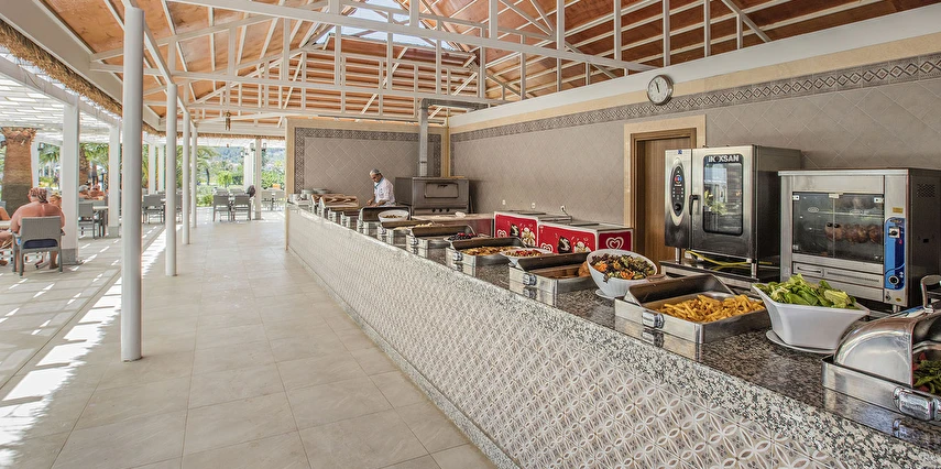 Sabah kahvaltısı, öğle ve akşam yemekleri açık büfe olup tesisin belirlemiş olduğu tüm yerli alkollü ve alkolsüz içecekler (bira,şarap,rakı,votka,cin,bazı likörler) ve bazı yabancı alkollü içecekler (viski,votka,cin) Soft ve Sıcak içecekler 24 saat ücretsizdir.